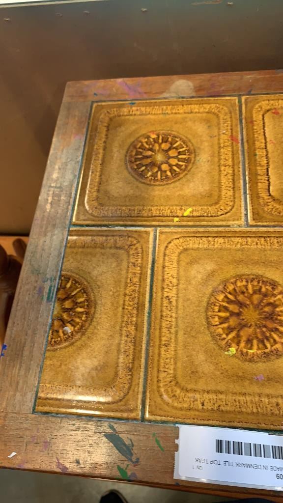 VINTAGE MADE IN DENMARK TILE TOP TEAK SIDE TABLE - 18 INCH X 15 X 17.5 TALL