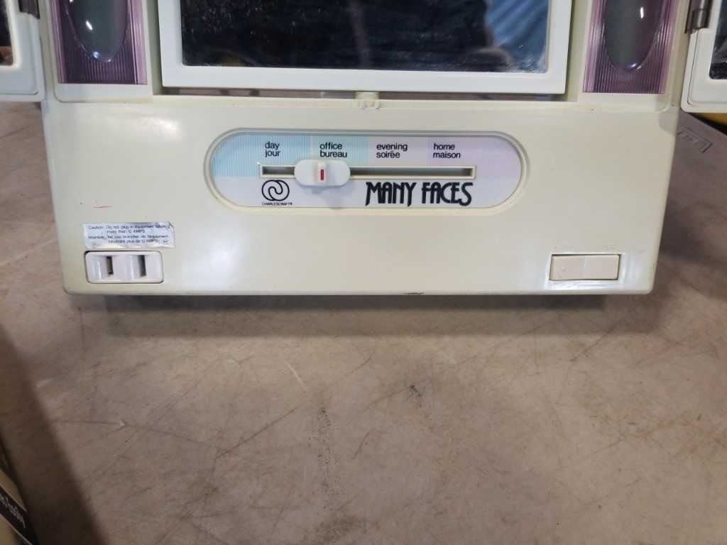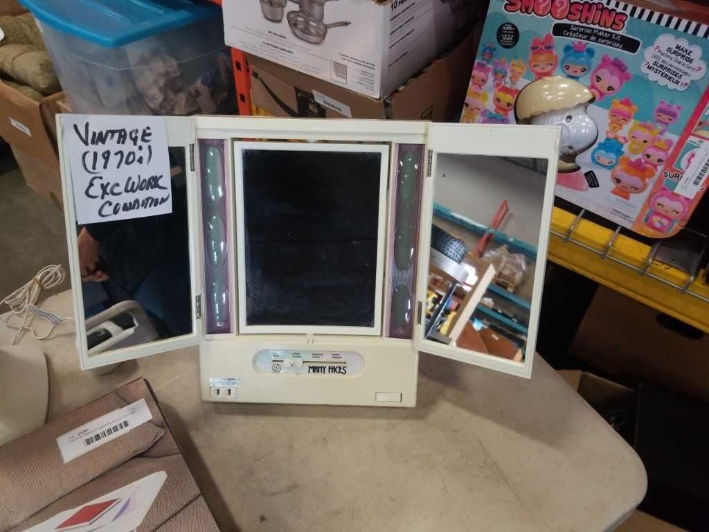 VINTAGE MAKEUP MIRROR WITH LIGHTING OPTIONS, TILT A TABLE AND ELECTROLUX VACUUM