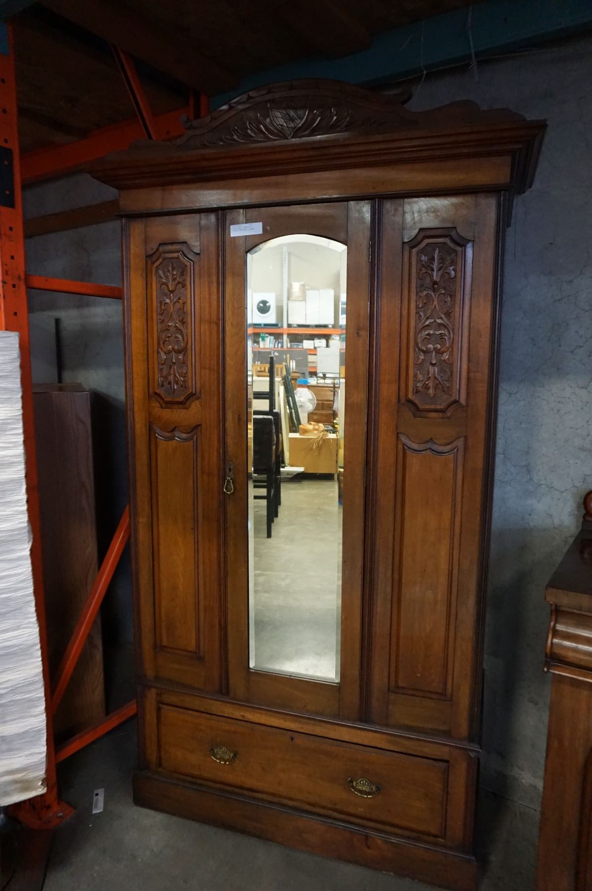 VINTAGE MAPLE ARMOIRE W/ MIRRORED DOOR AND 1 DRAWER