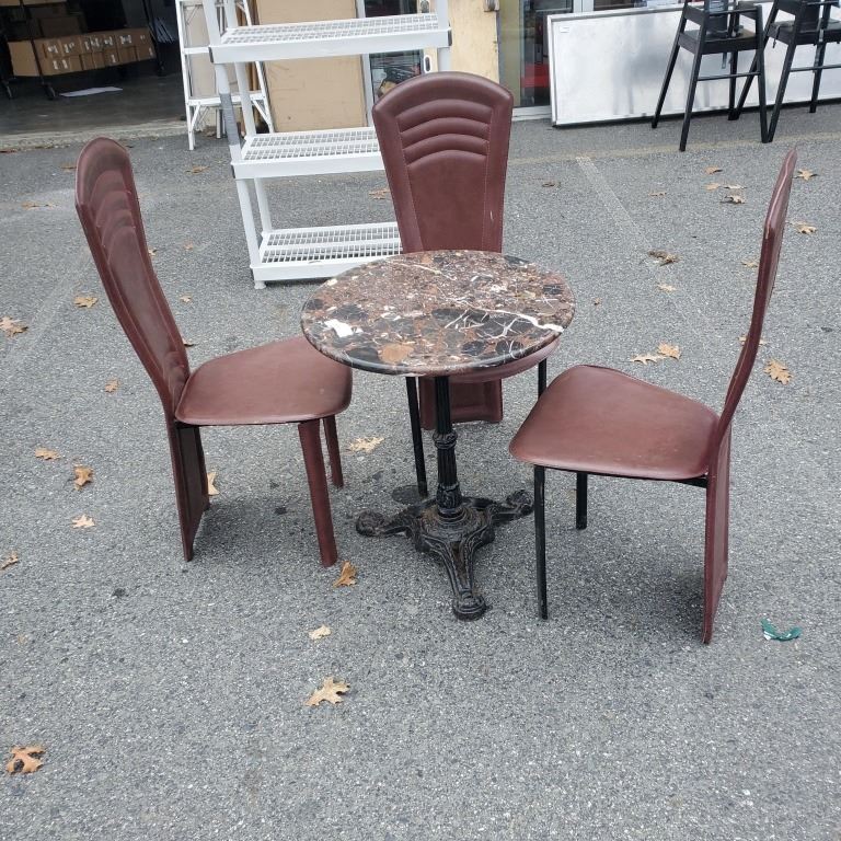 VINTAGE MARBLE TABLE WITH 3 CHAIRS