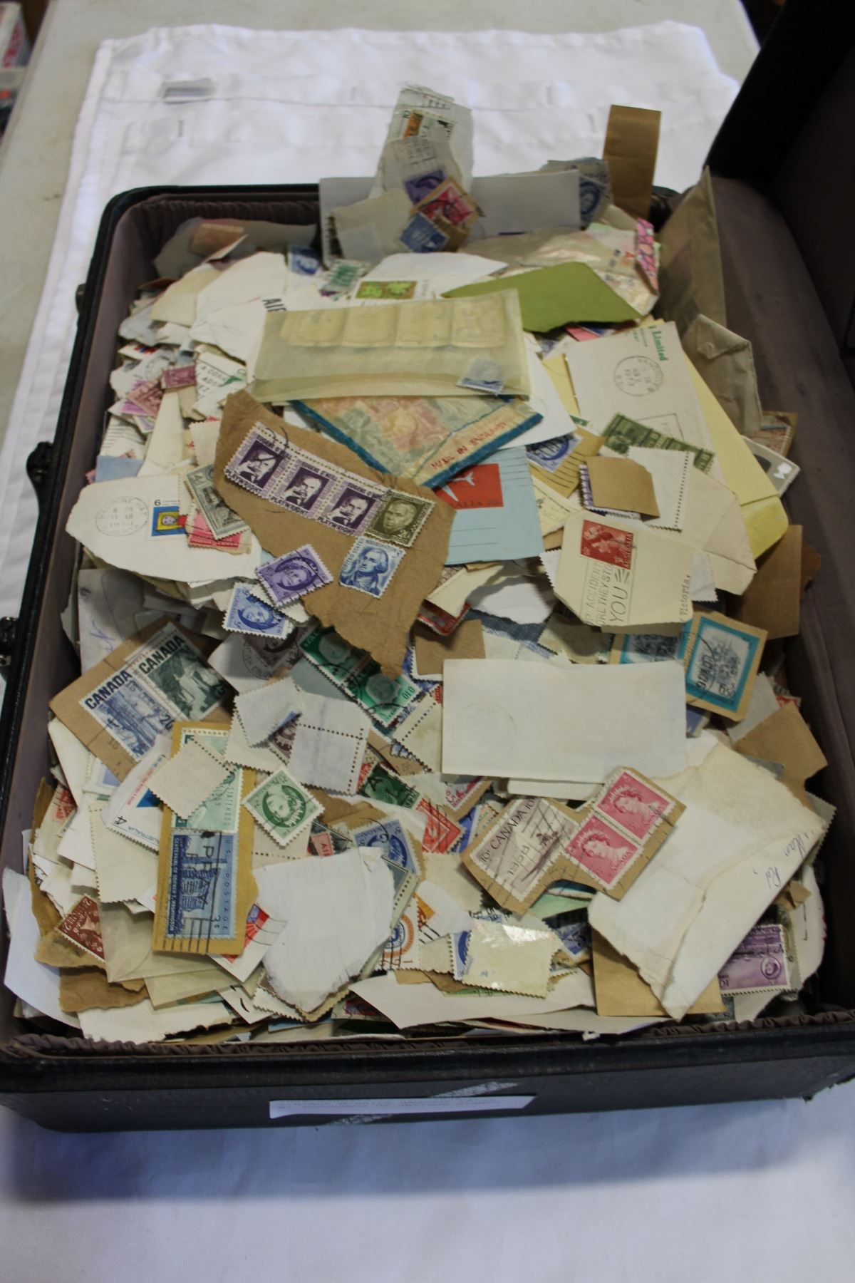 VINTAGE MCBRIDE BAGGAGE CASE W/ THOUSANDS OF ANTIQUE STAMPS