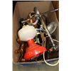 VINTAGE METAL AND WOODEN WARE AND LAMP