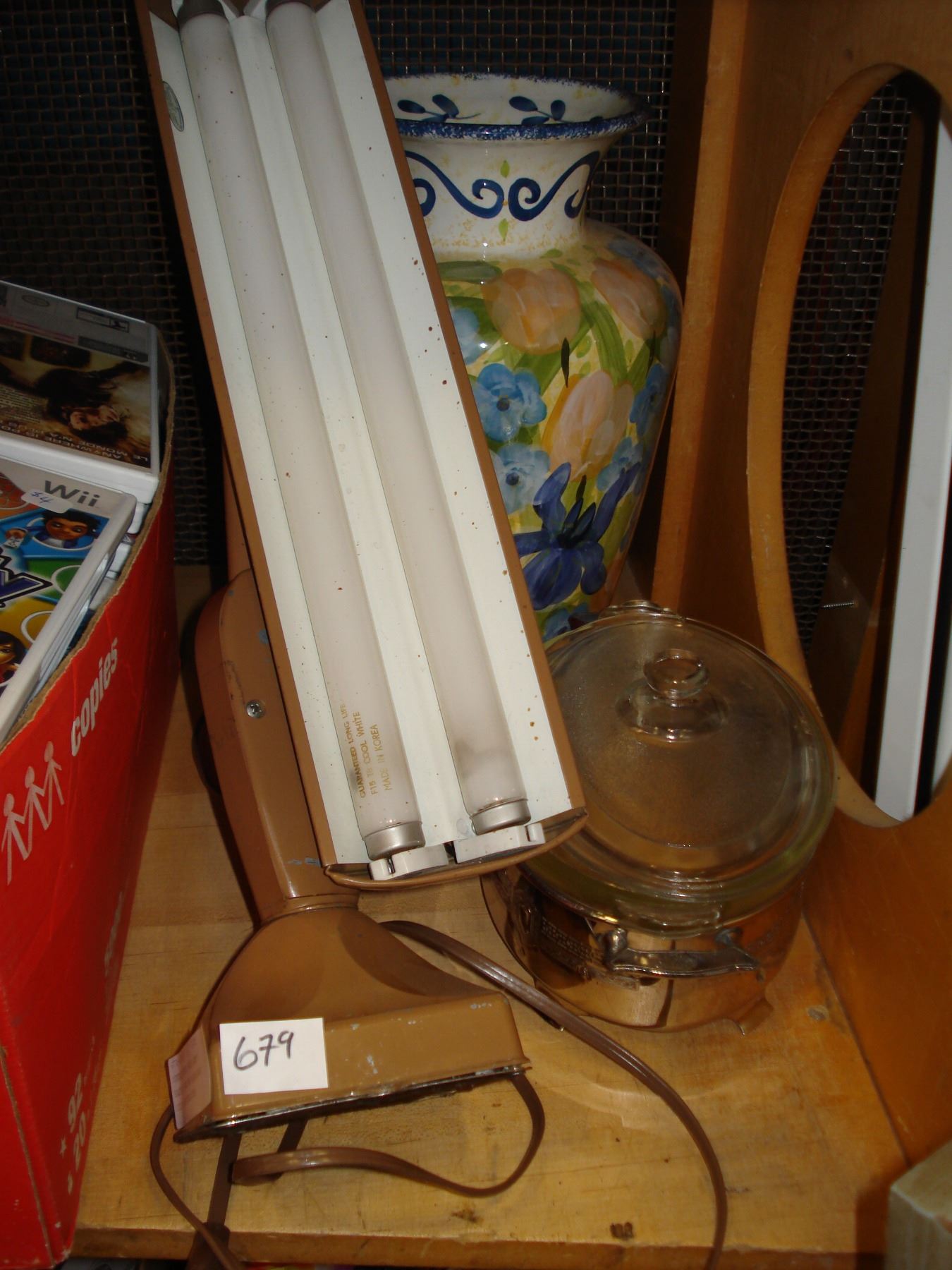 VINTAGE METAL DESK LAMP EASTERN VASE AND GLASS AND SILVER SERVING DISH