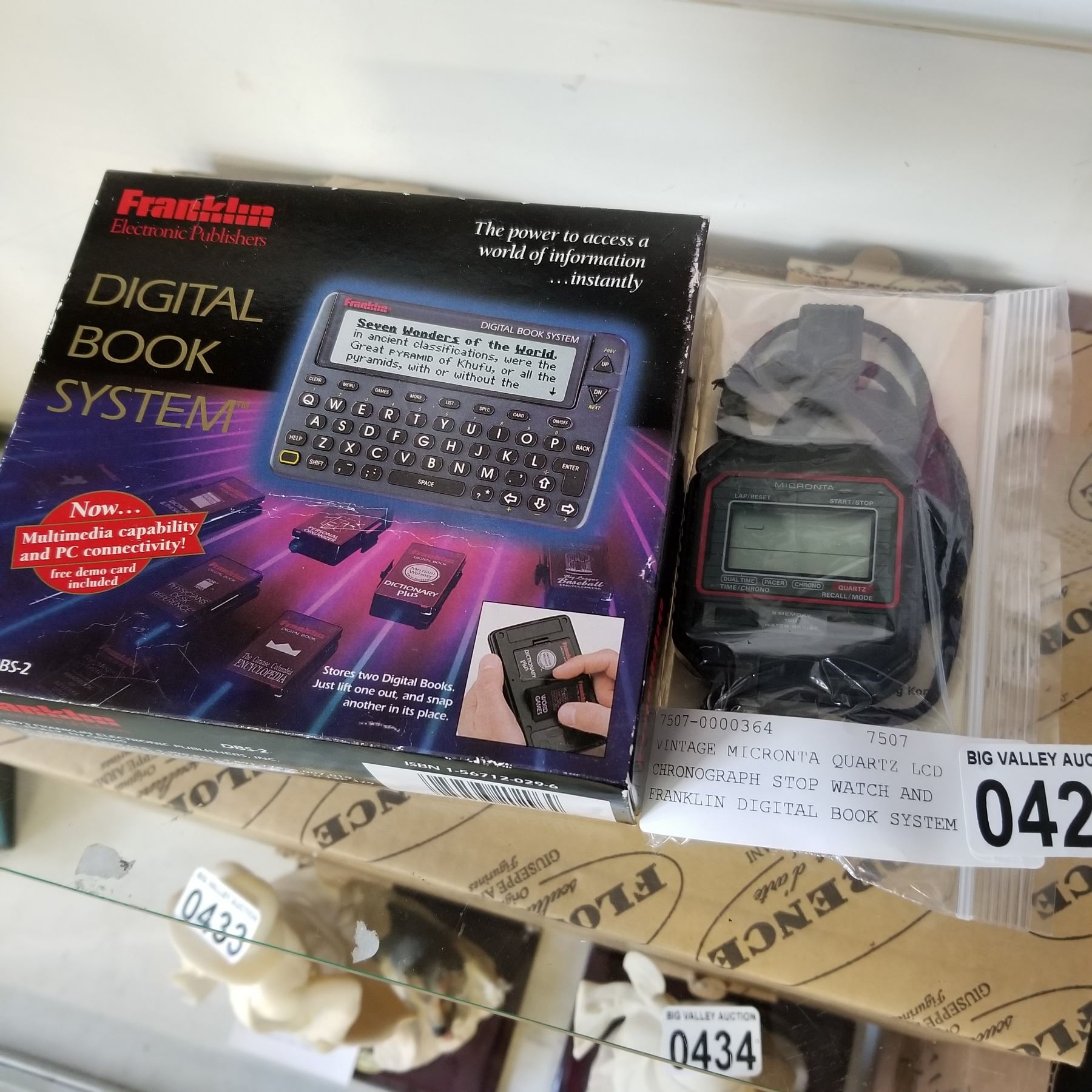VINTAGE MICRONTA QUARTZ LCD CHRONOGRAPH STOP WATCH AND FRANKLIN DIGITAL BOOK SYSTEM