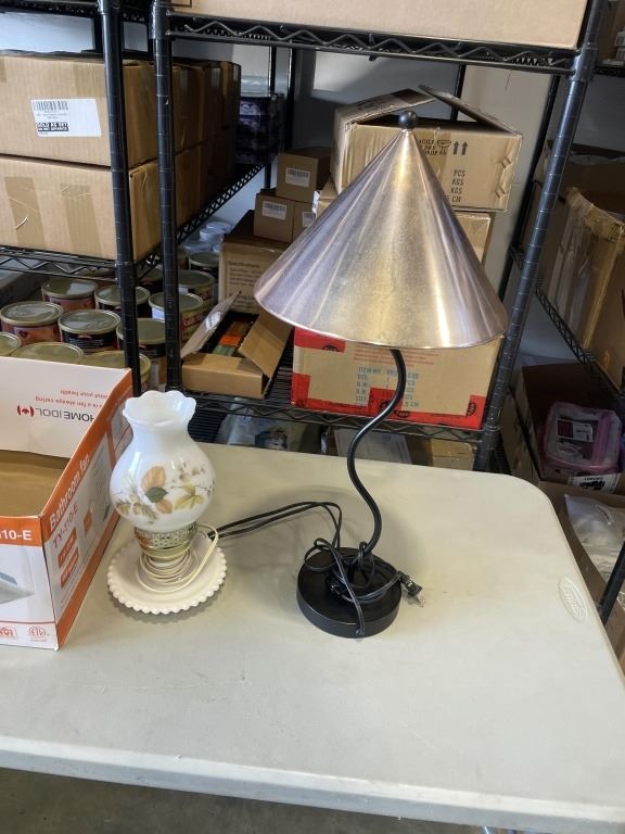 VINTAGE MILK GLASS LAMP AND TABLE LAMP WITH COPPER SHADE