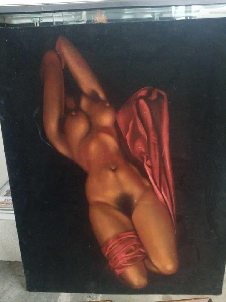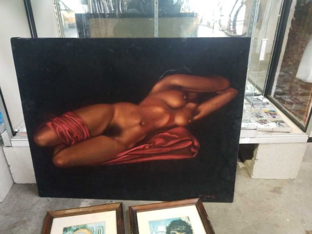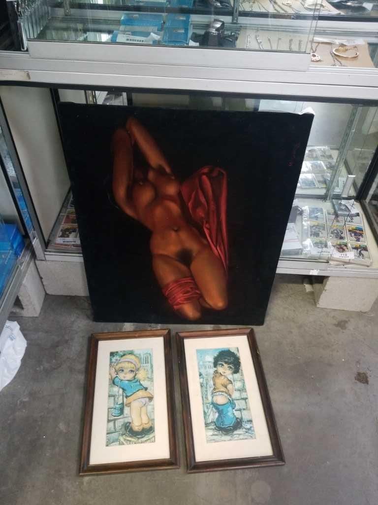 VINTAGE NUDE VELVET PAINTING AND 2 LAMY YOUTH PRINTS