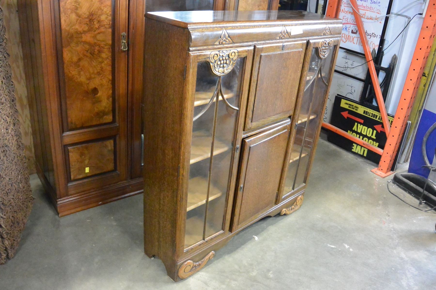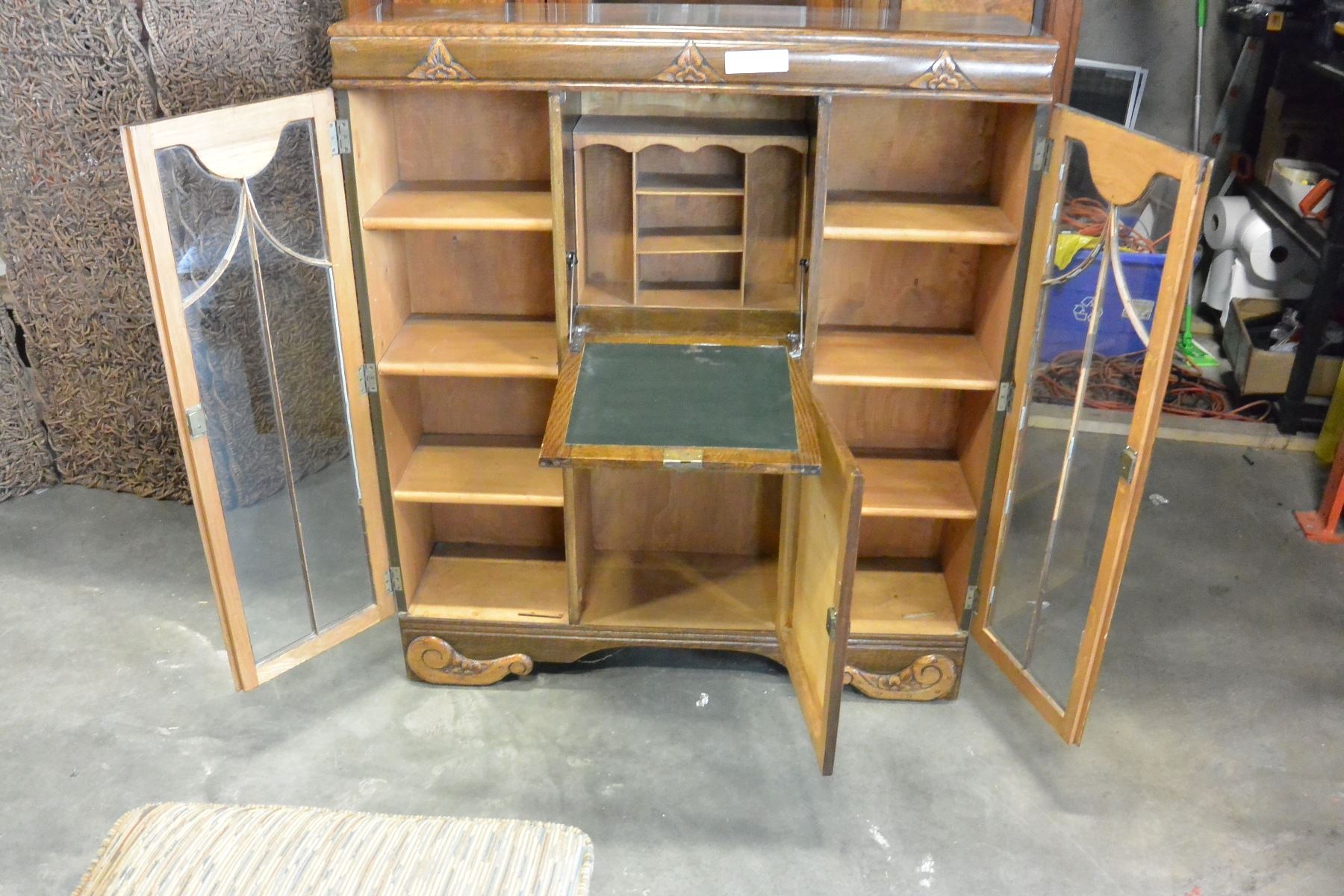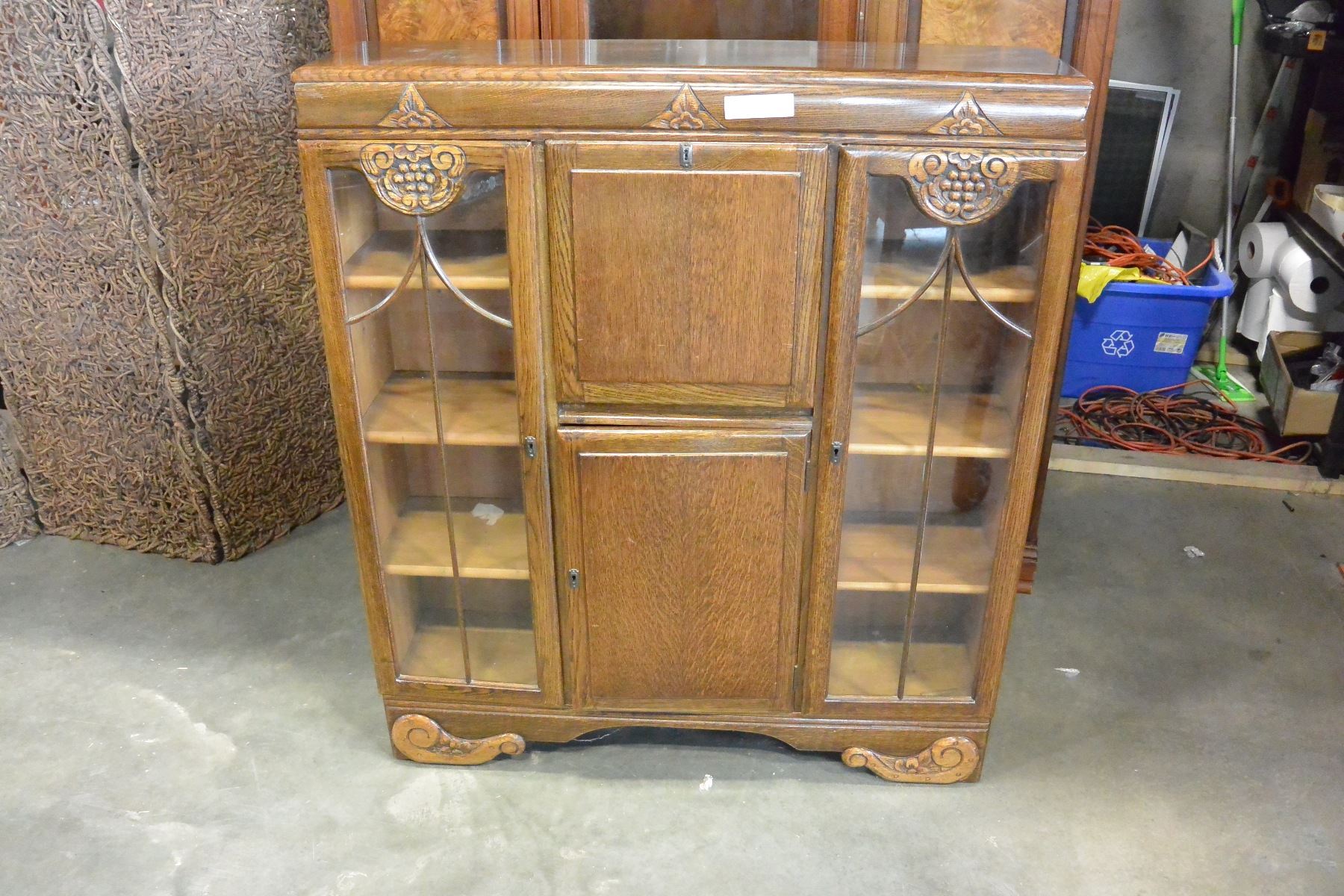 VINTAGE OAK SECRETAIRE DISPLAY CABINET