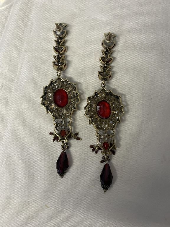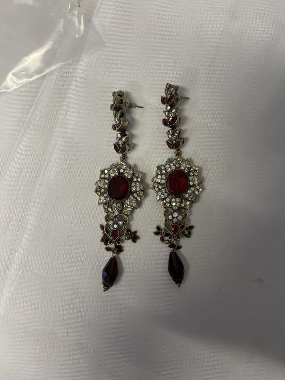 VINTAGE PAIR OF RED AND WHITE STONES EARRINGS