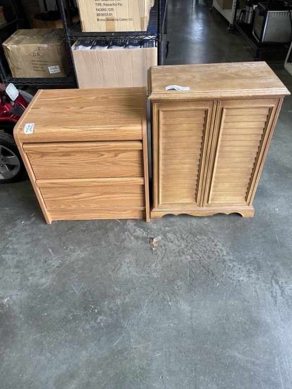 VINTAGE PLASTIC WOOD LOOK HAMPER AND 2 DRAWER NIGHT STAND