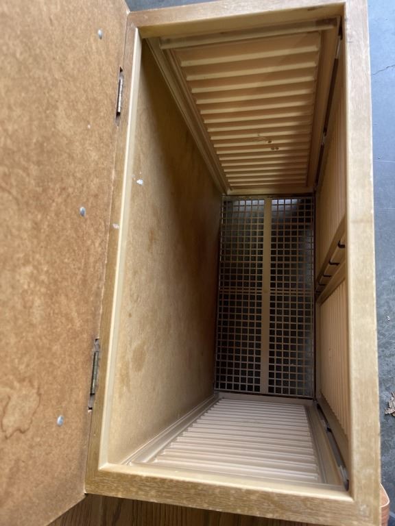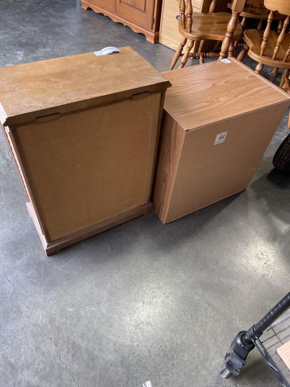 VINTAGE PLASTIC WOOD LOOK HAMPER AND 2 DRAWER NIGHT STAND