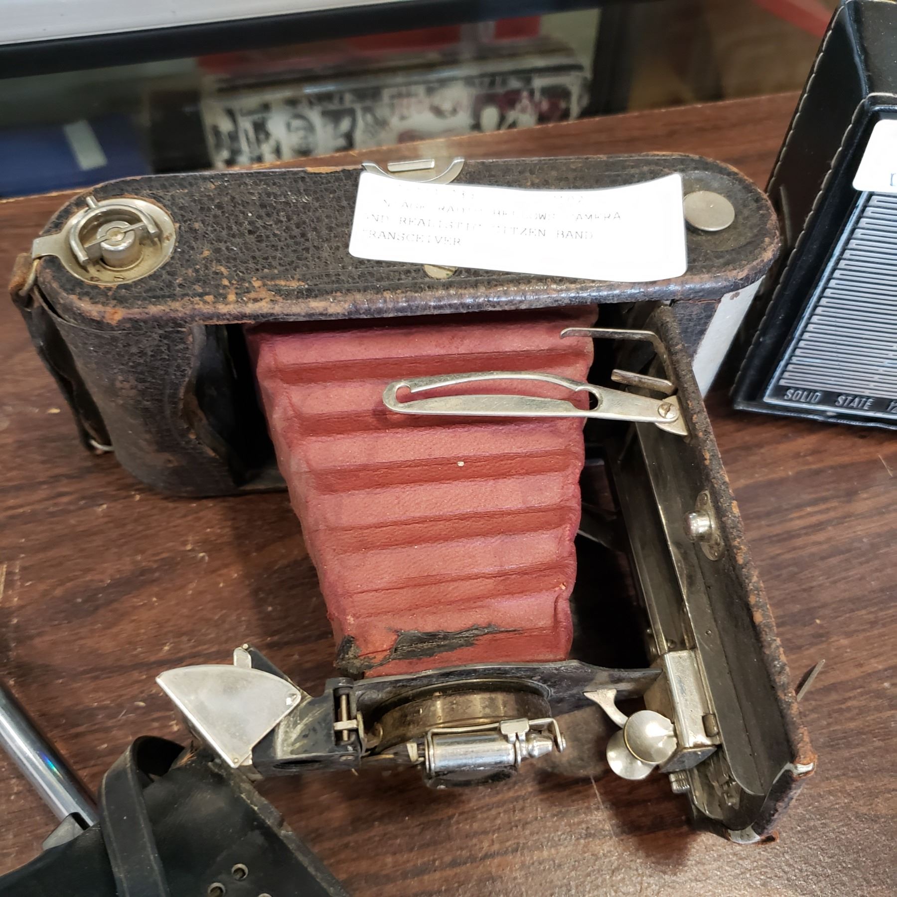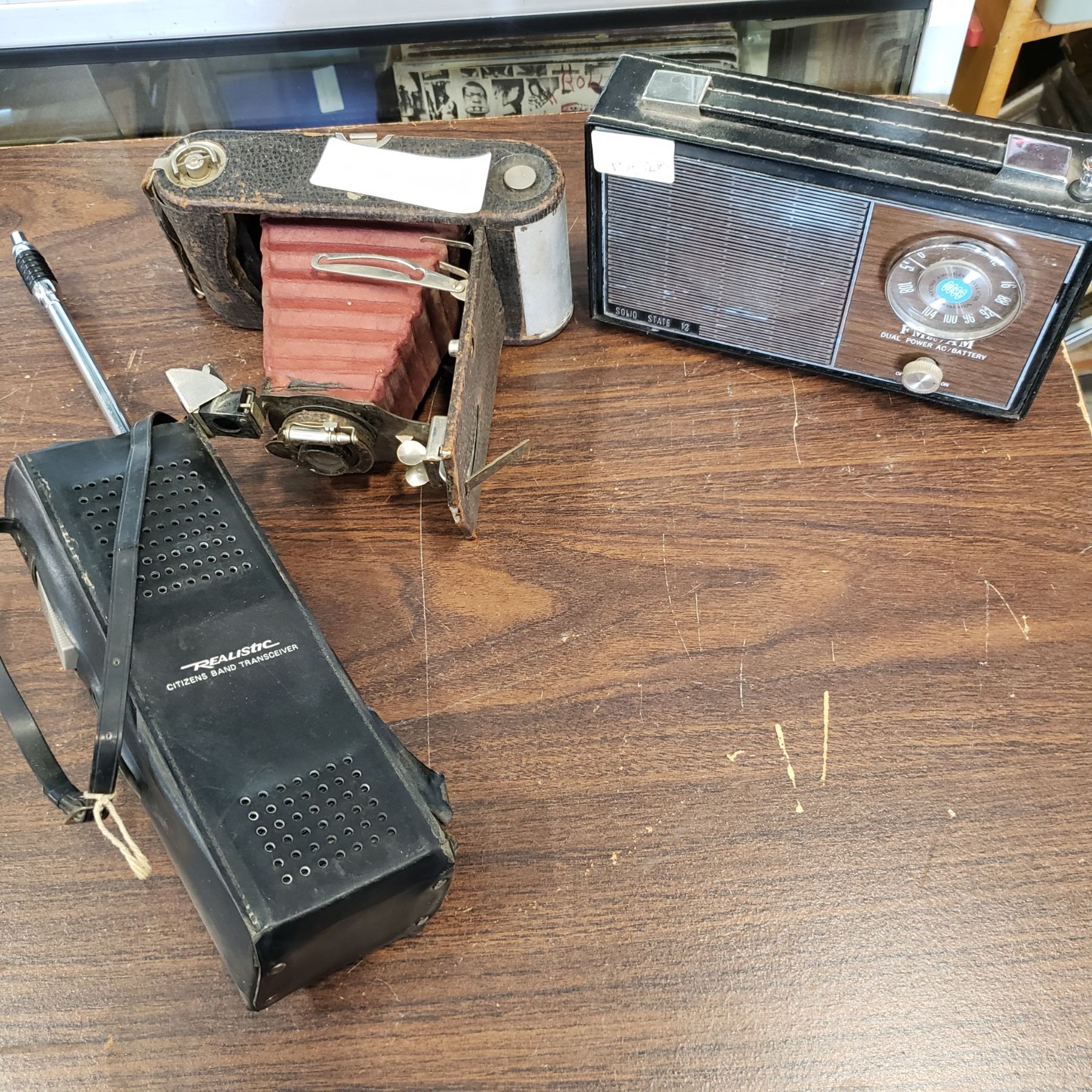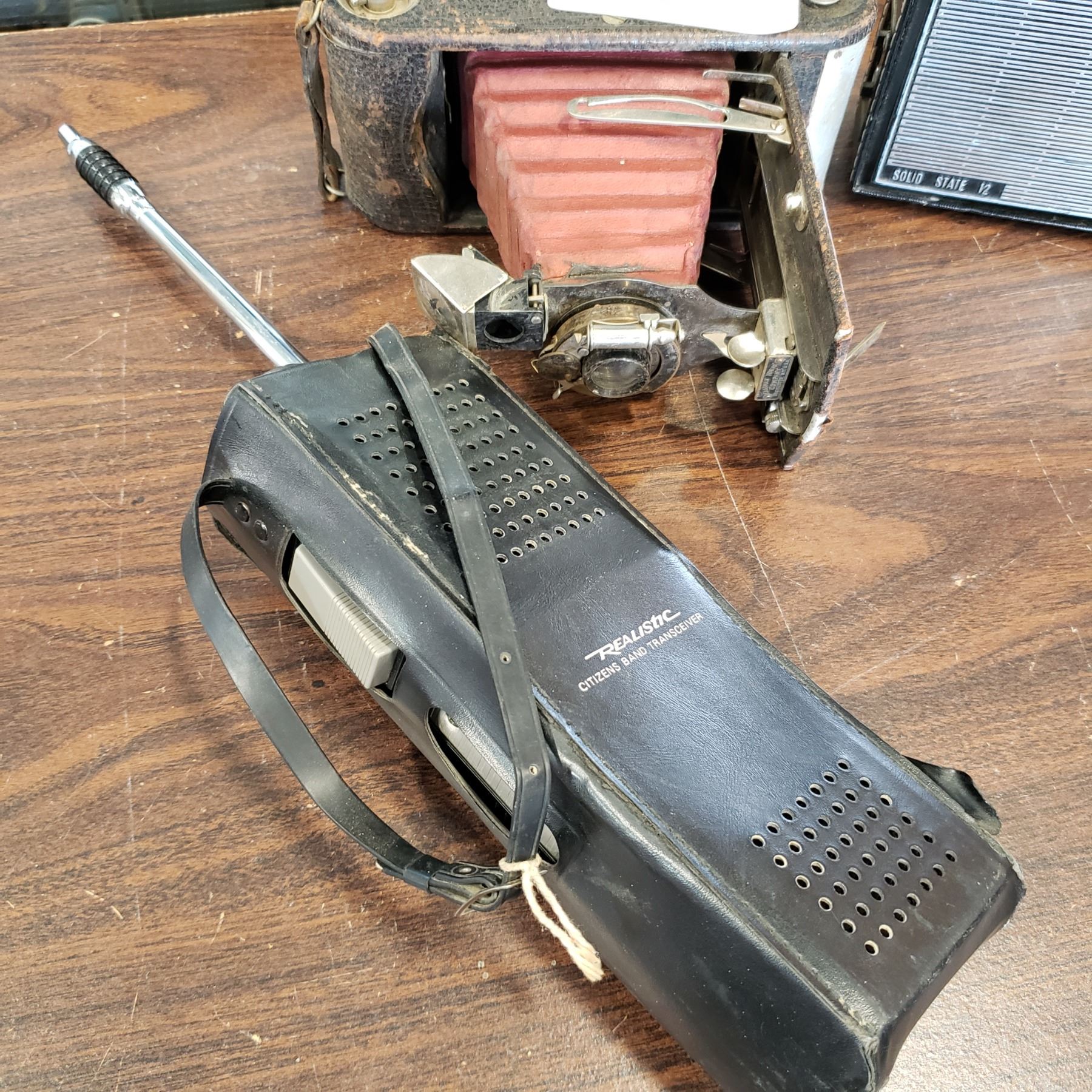 VINTAGE RADIO BELLOWS CAMERA AND REALISTIC CITZEN BAND TRANSCEIVER