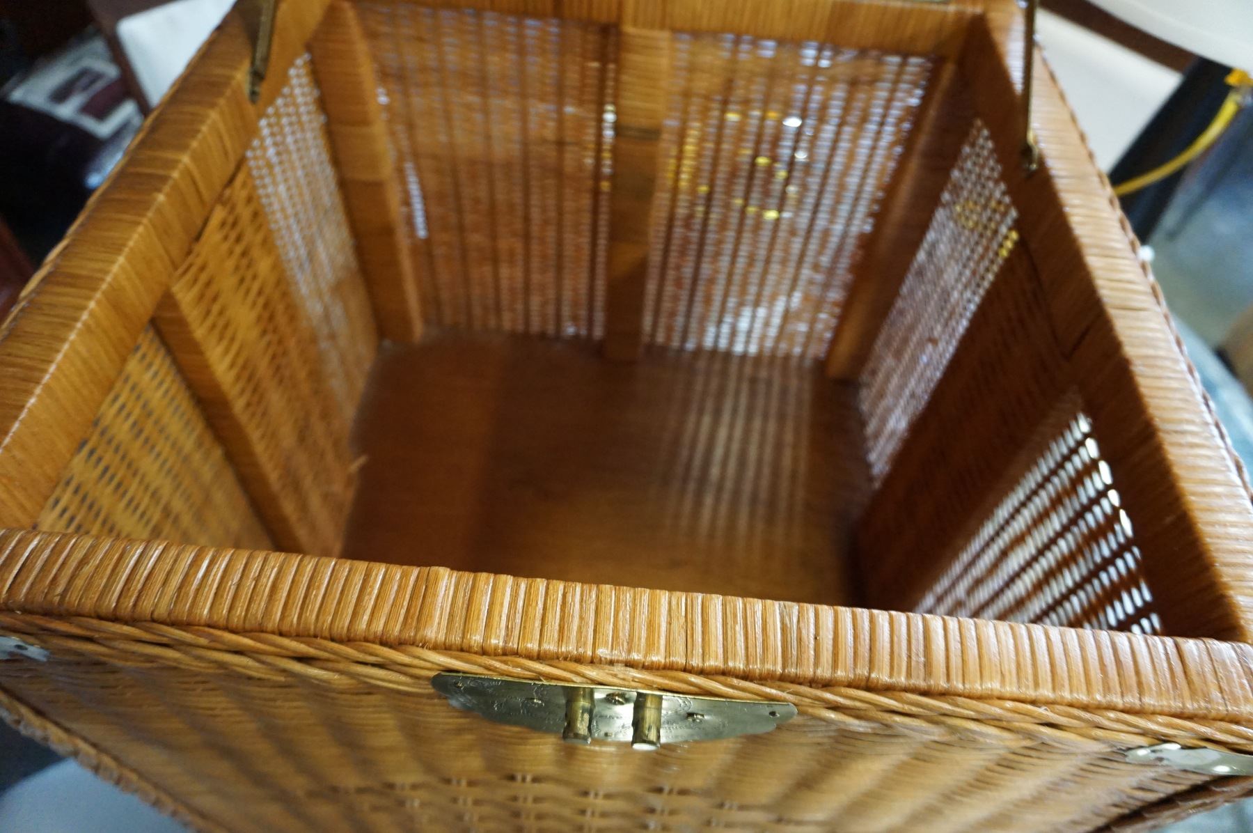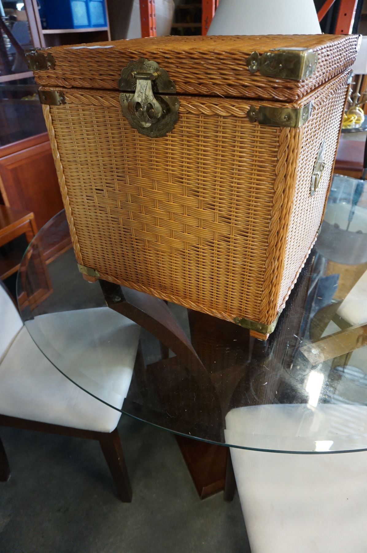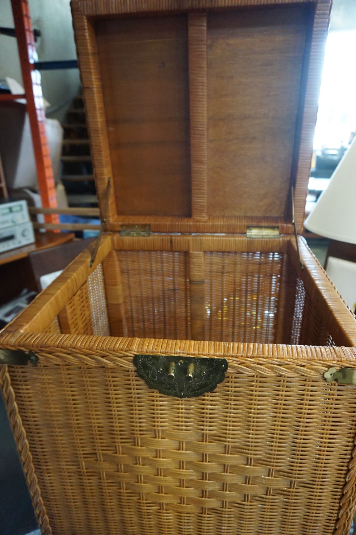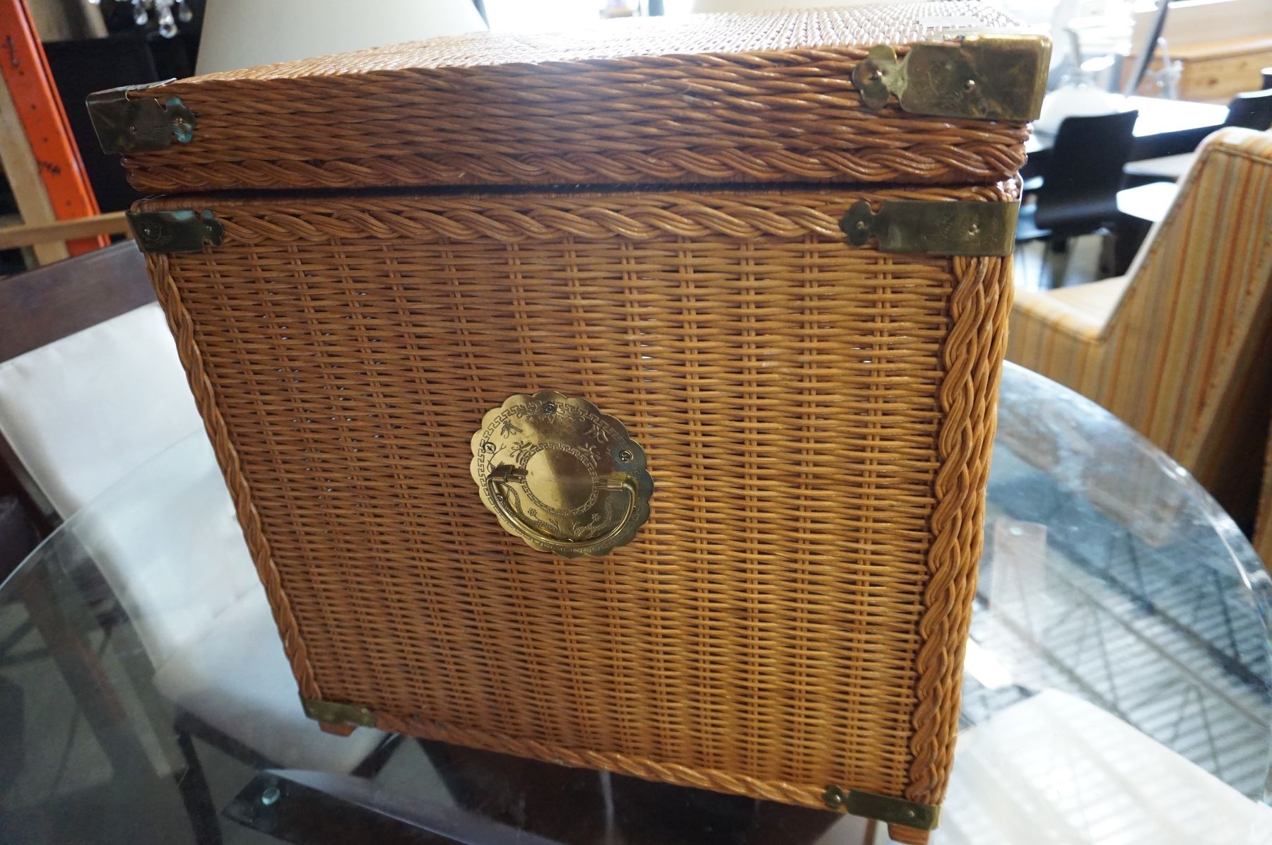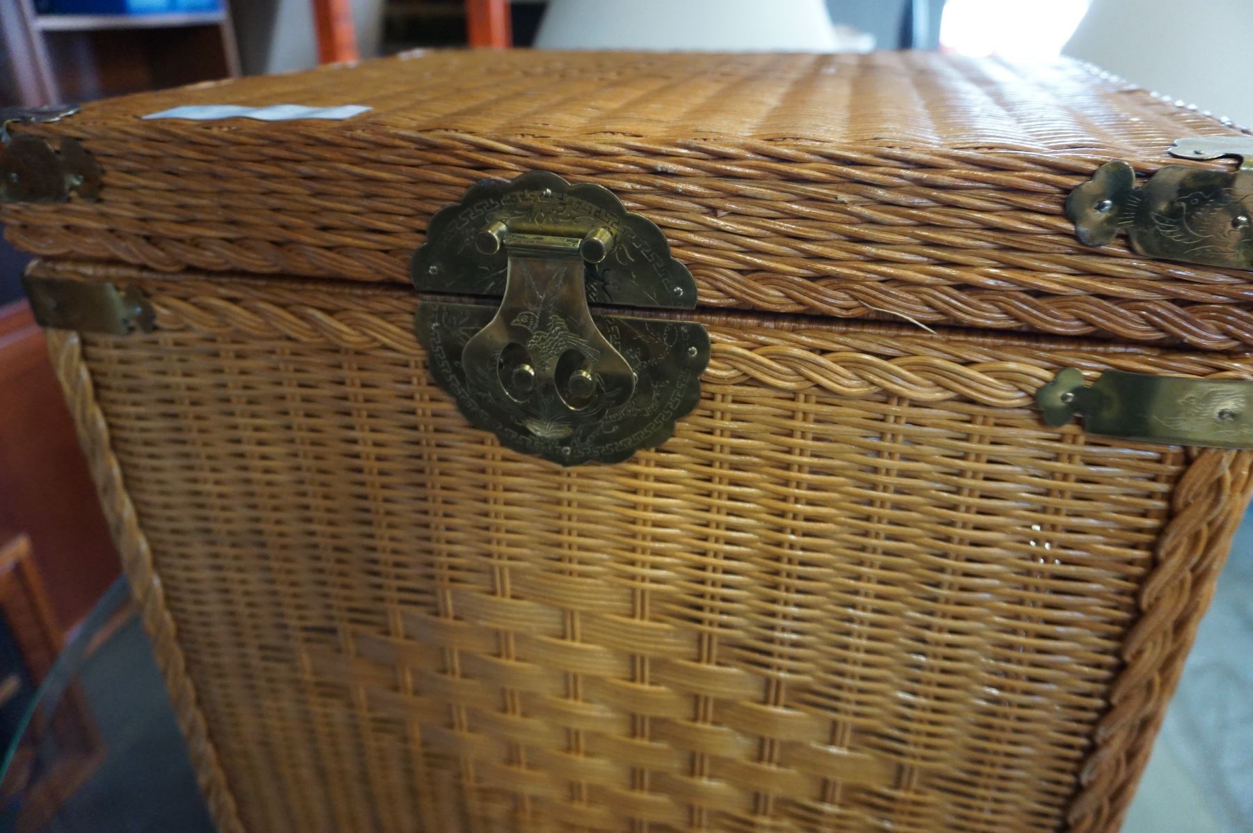 VINTAGE RATTAN TRUNK WICKER CHEST W/ BRASS EASTERN ACCENTS