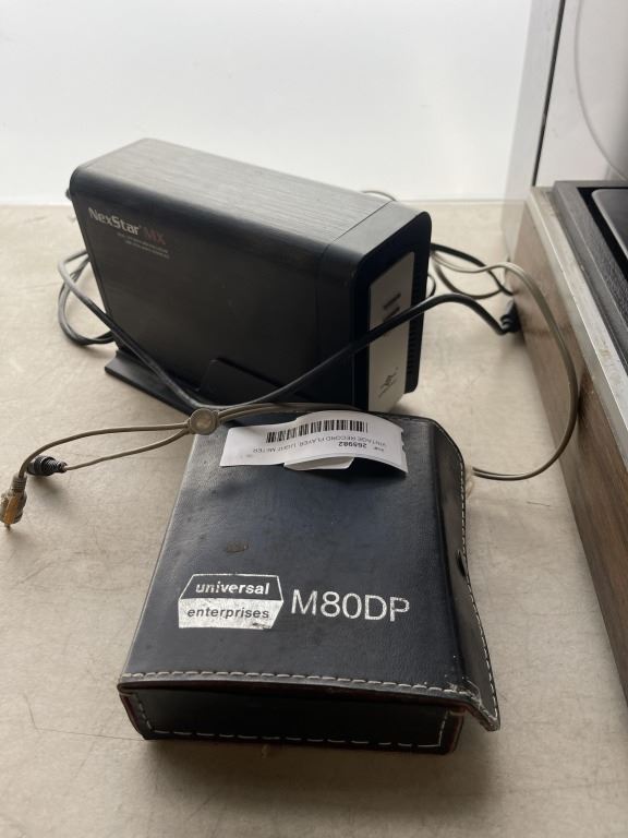 VINTAGE RECORD PLAYER, LIGHT METER AND HDD ENCLOSURE