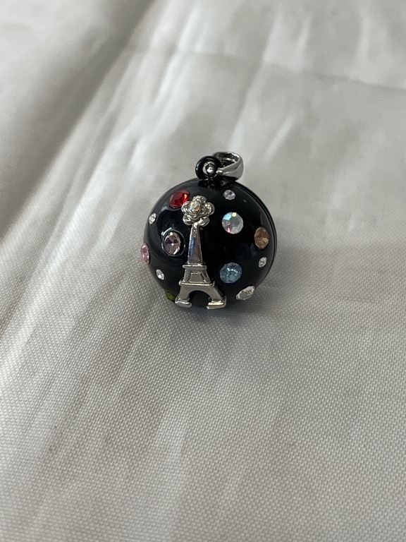 VINTAGE RHINESTONES BALL W/ PARIS EIFFEL TOWER PENDANT