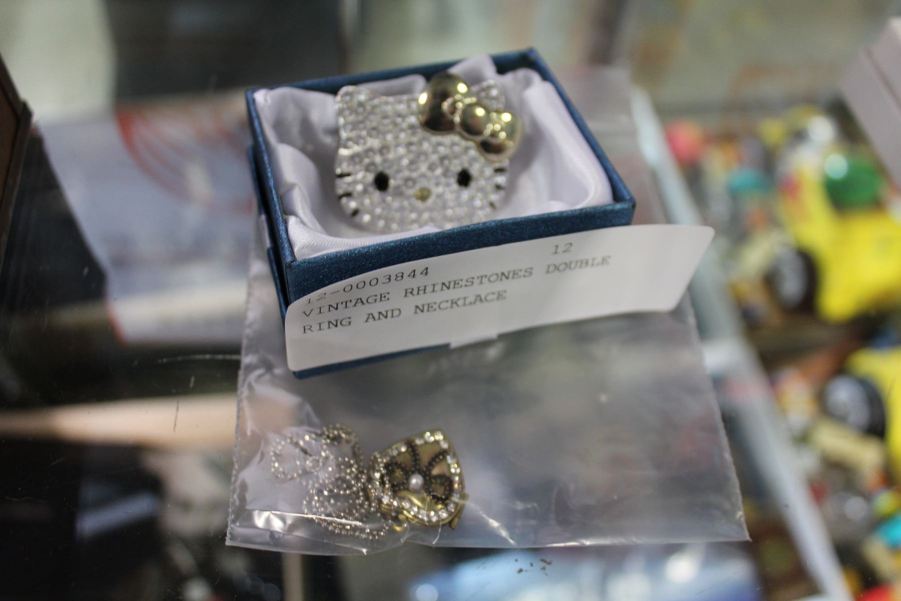 VINTAGE RHINESTONES DOUBLE RING AND NECKLACE