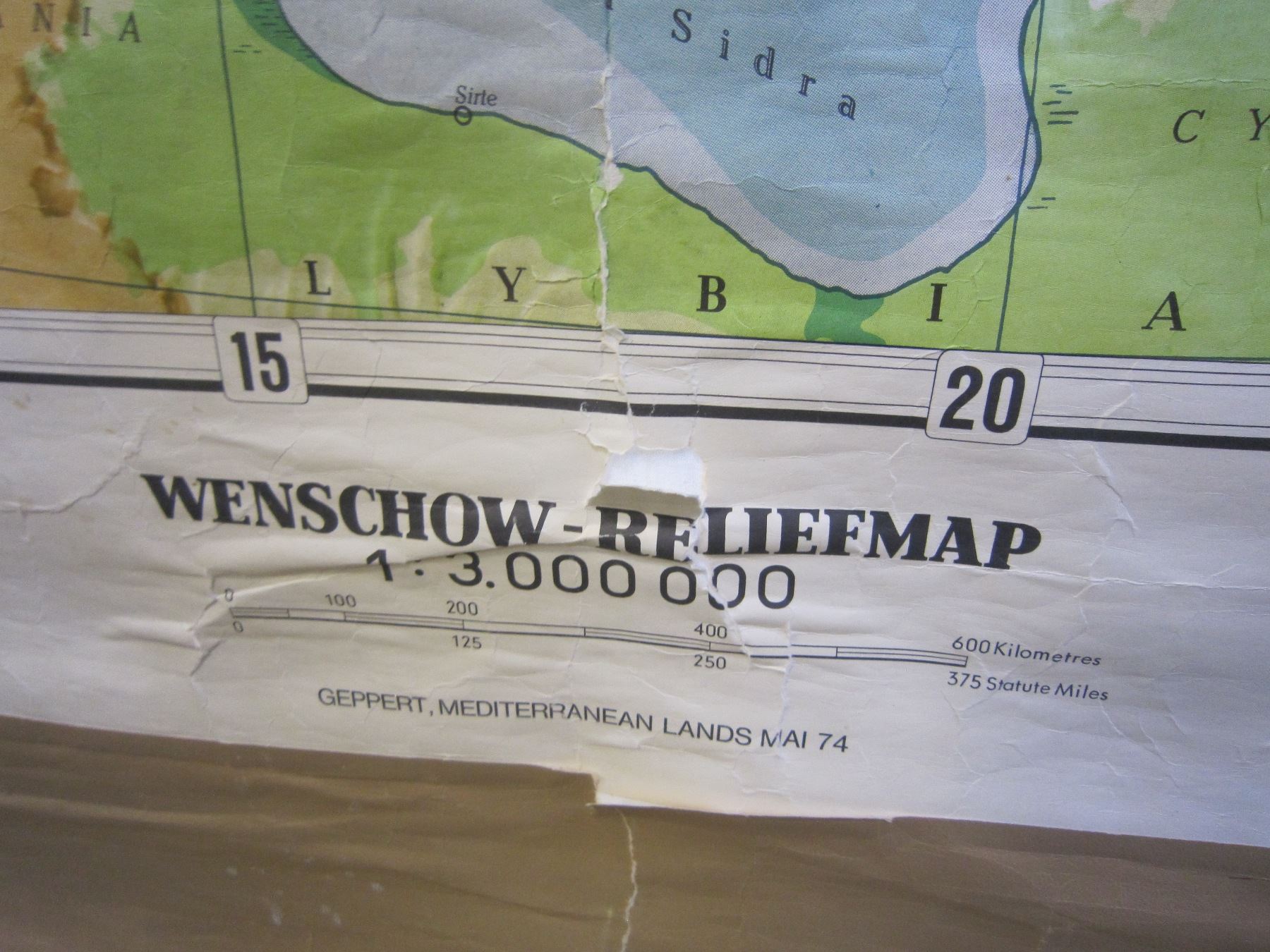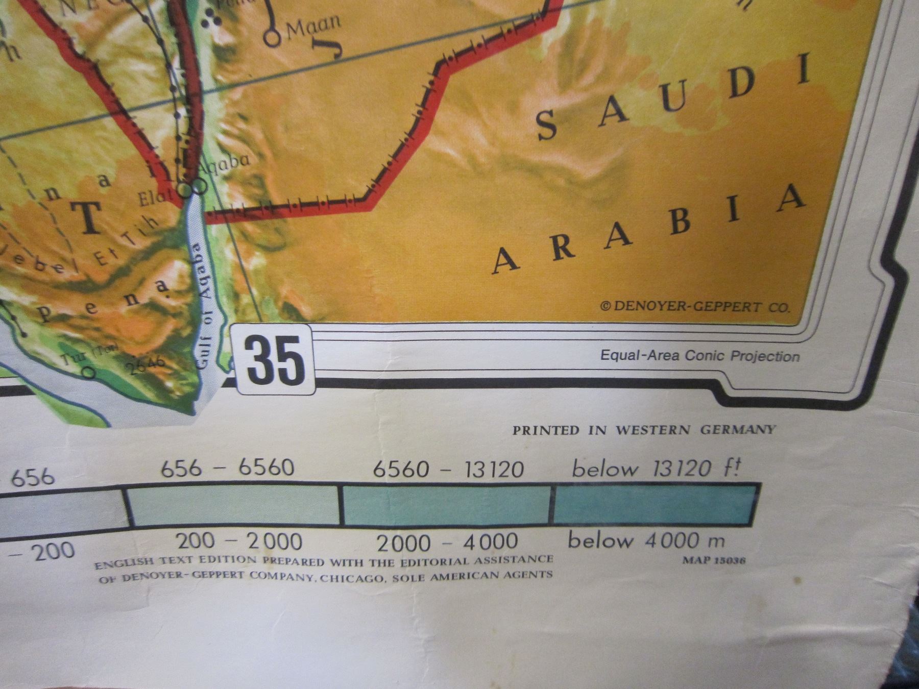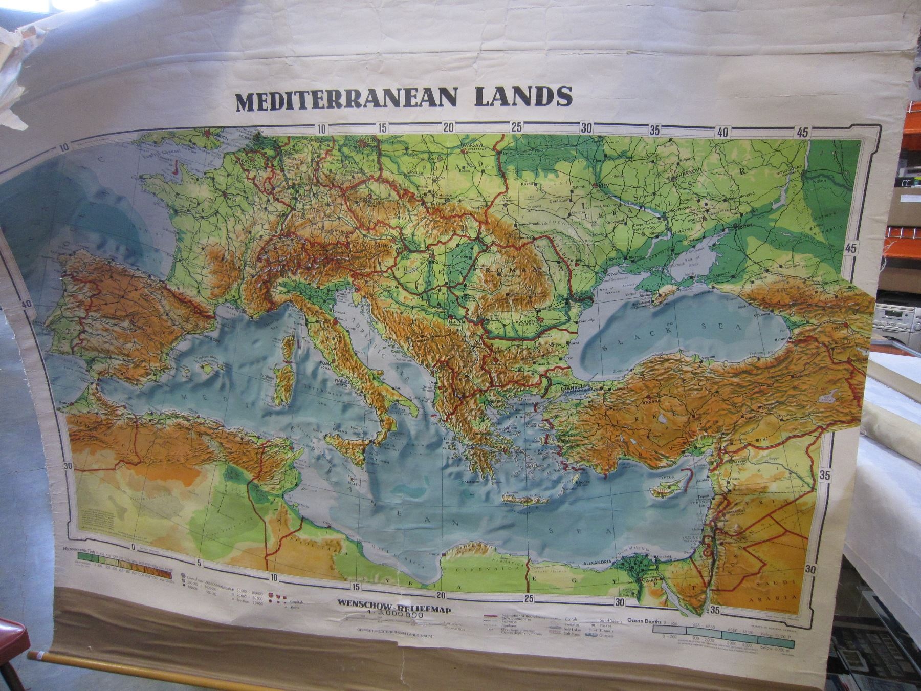 VINTAGE ROLL UP SCHOOL MAP OF MEDITERRANEAN 1970S