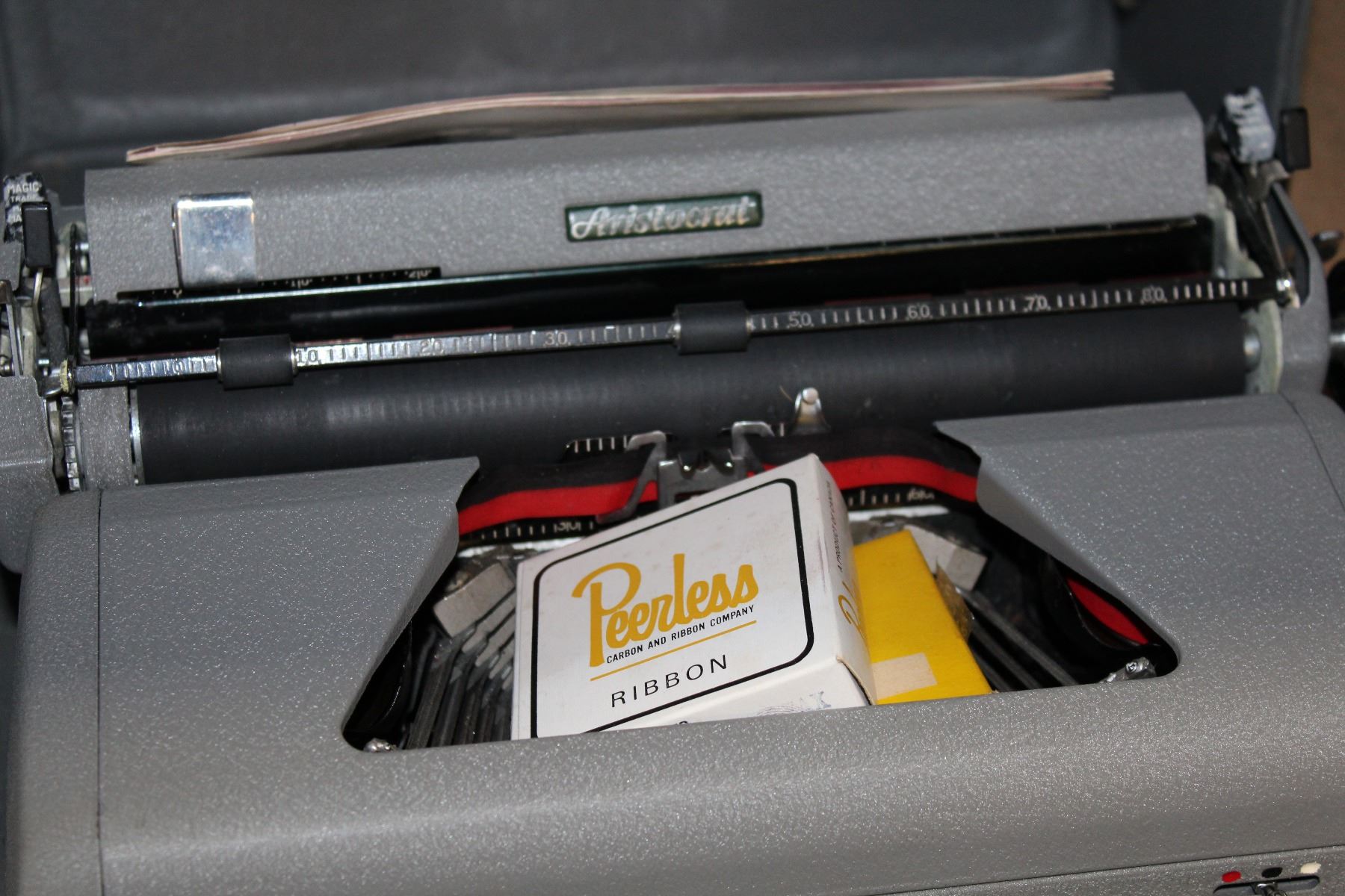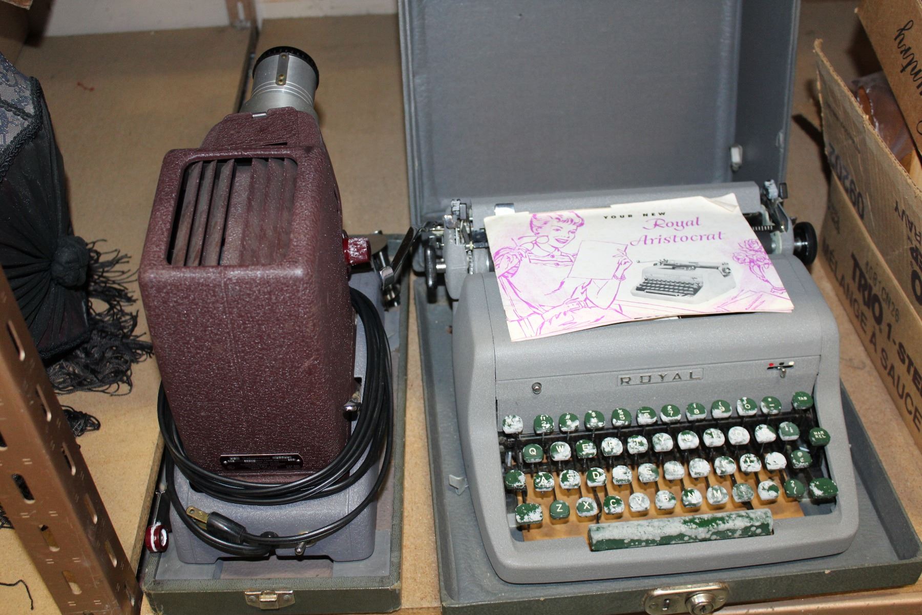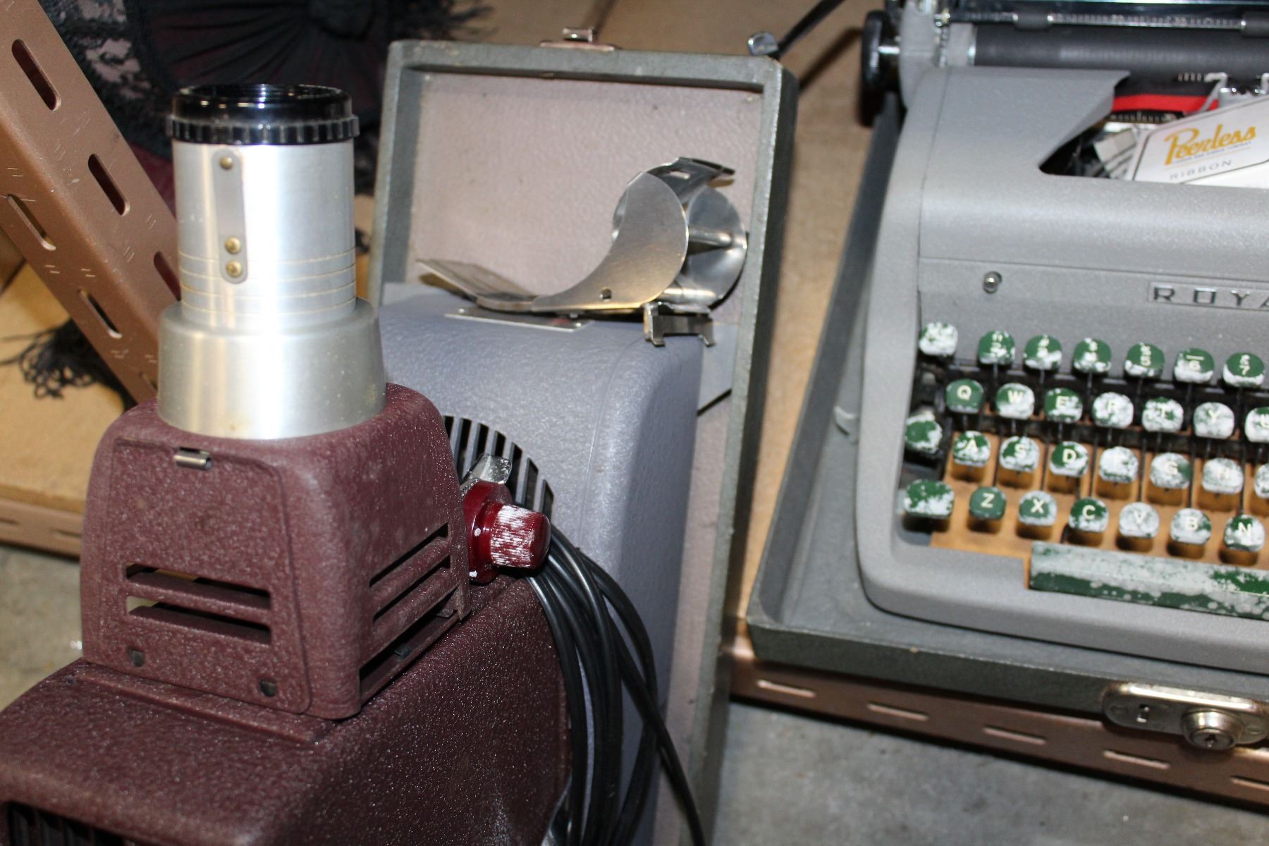 VINTAGE ROYAL TYPEWRITER SLIDE PROJECTOR AND SCREEN