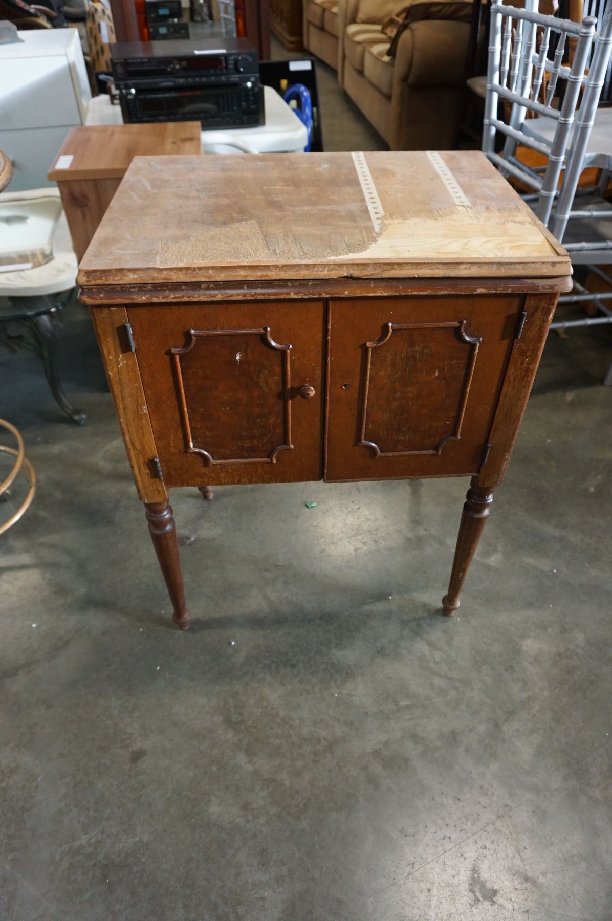 VINTAGE SEWING MACHINE TABLE W/ SEWING MACHINE INSIDE