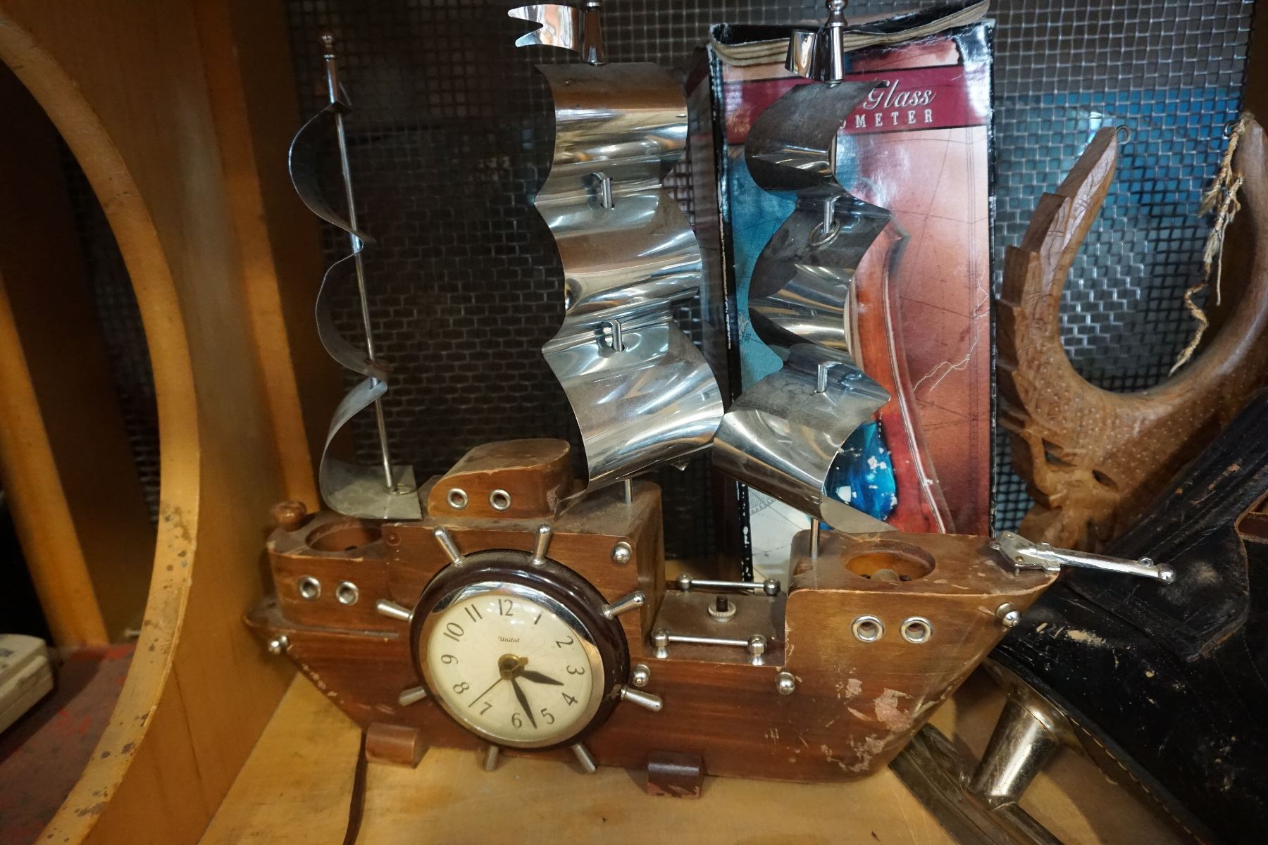 VINTAGE SHIP CLOCK LAMP METAL PLANE, BAROMETER, AND DECOR