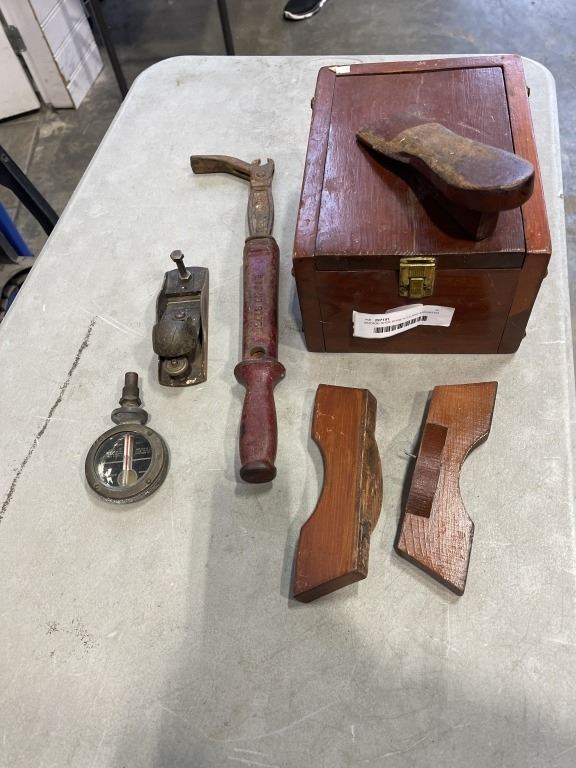 VINTAGE SHOE SHINE KITS AND ASOSRTED ANTIQUE TOOLS