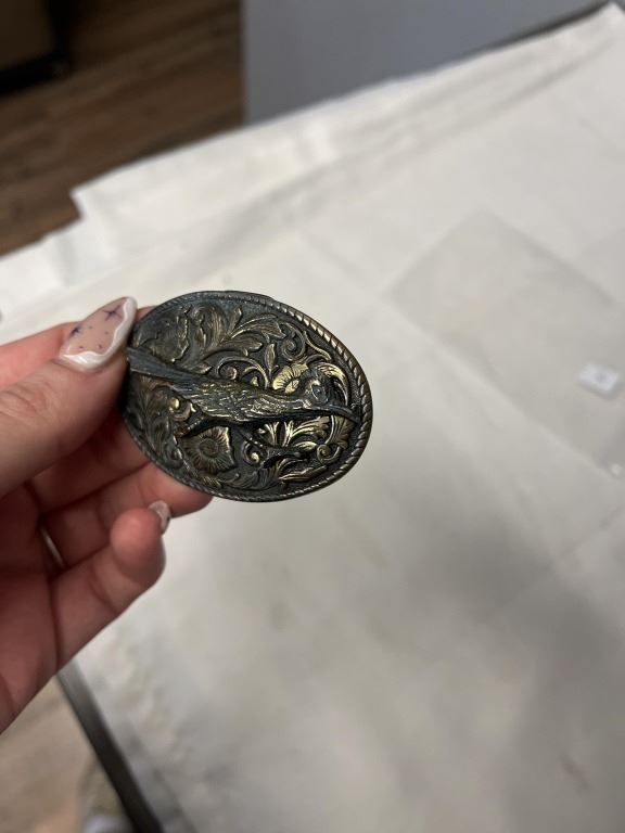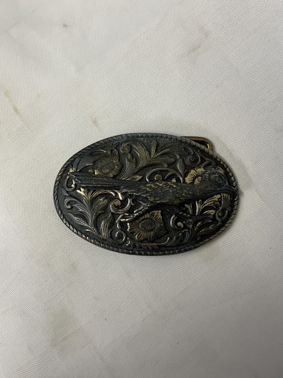VINTAGE SILVER AND CGOLD COLOUR HAND CRAFTED ROAD RUNNER BIRD WESTERN BELT BUCKLE