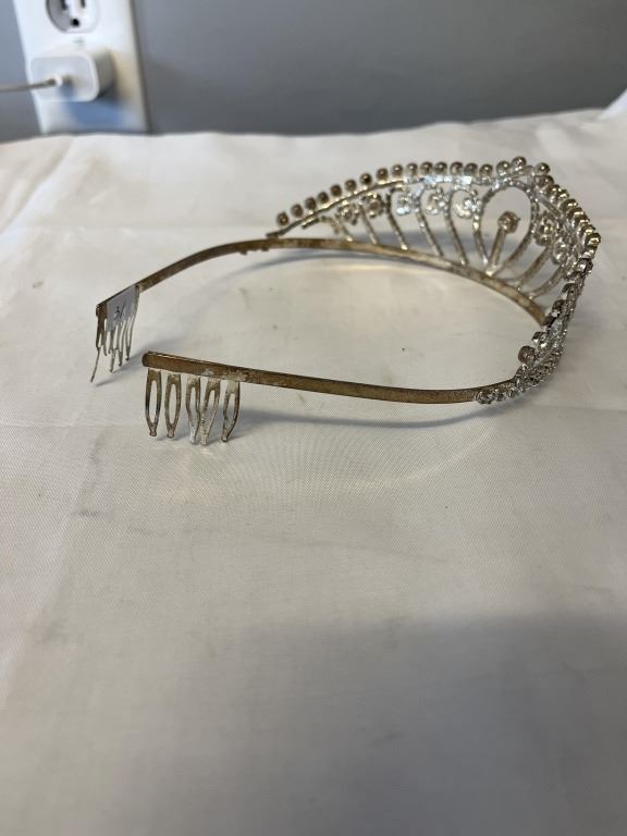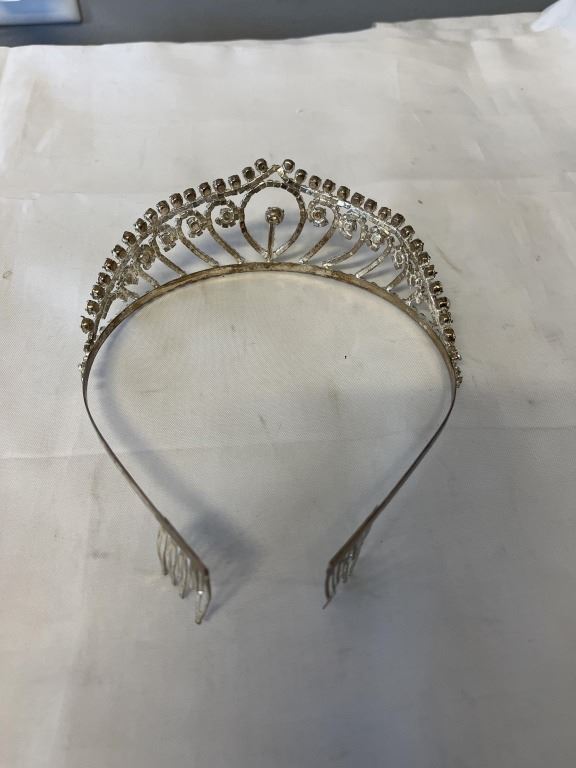 VINTAGE SILVER PLATED W/ RHINESTONES TIARA