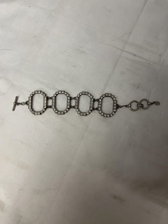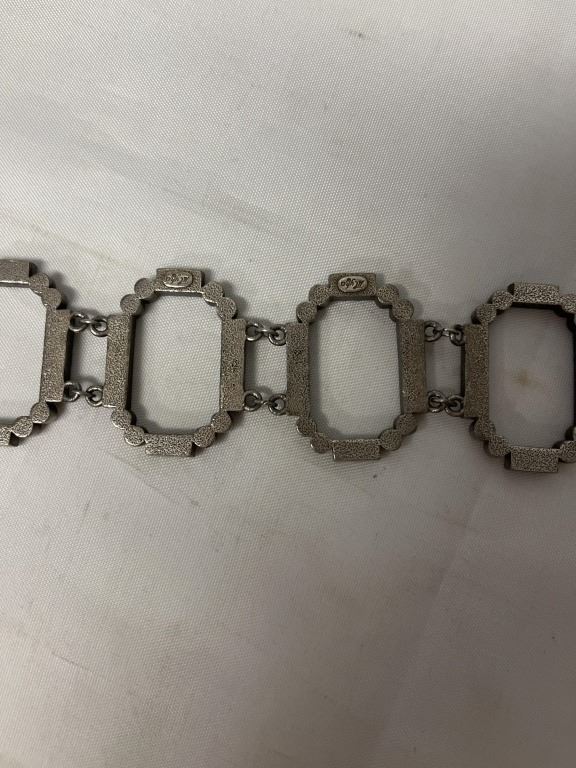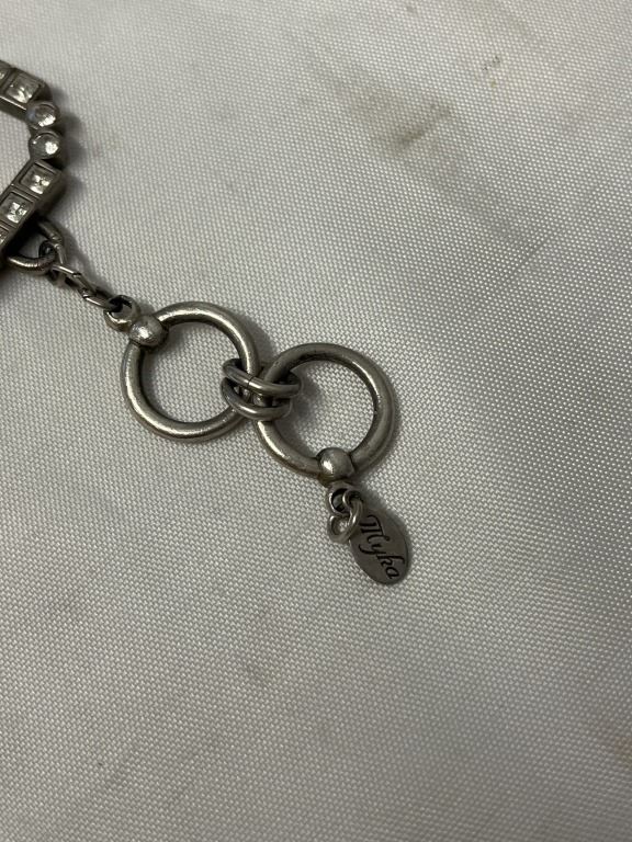 VINTAGE SILVER W/ BEZEL SET RHINESTONES BRACELET, MARKED MYKA
