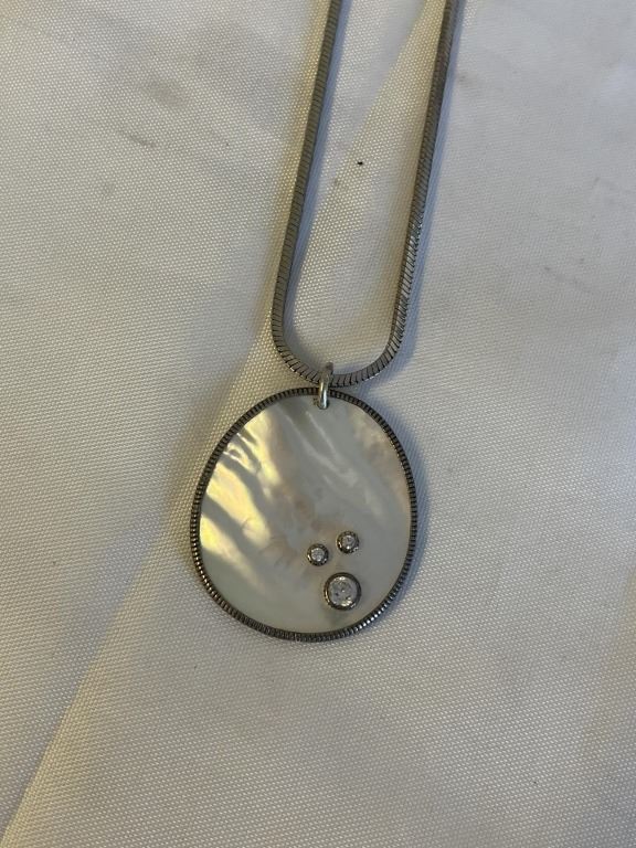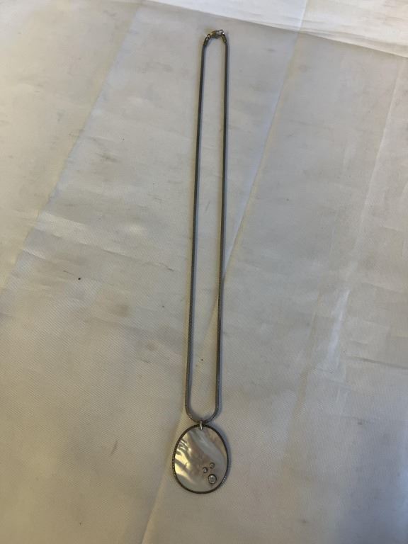 VINTAGE SILVER W/ MOTHER OF PEARL PENDANT W/ CHAIN NECKLACE
