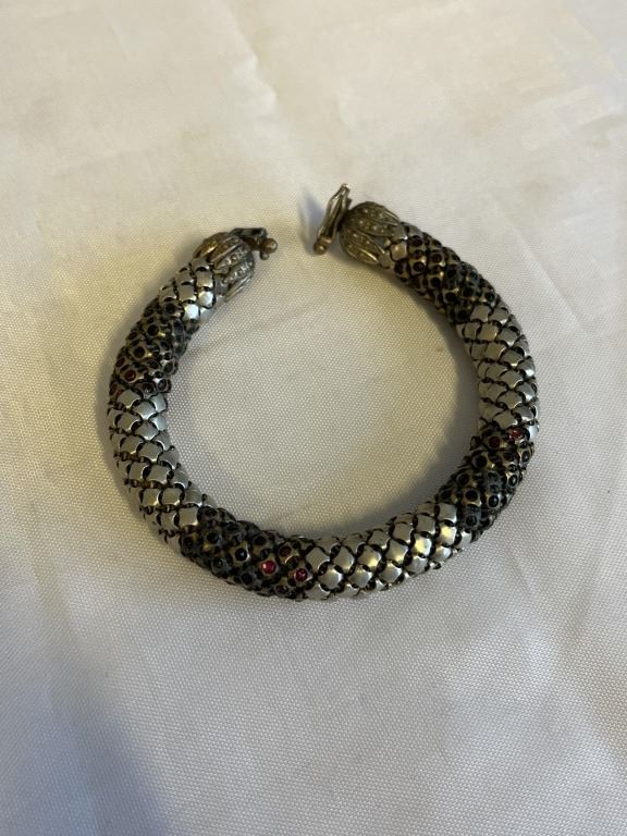 VINTAGE SILVER W/ STONES BANGLE BRACELET