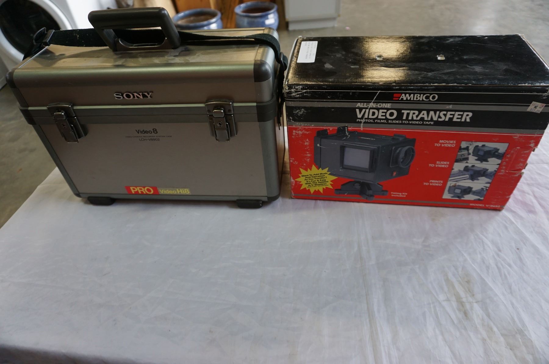 VINTAGE SONY VIDEO CAMERA IN CASE AND AMICO VIDEO TRANSFER MACHINE