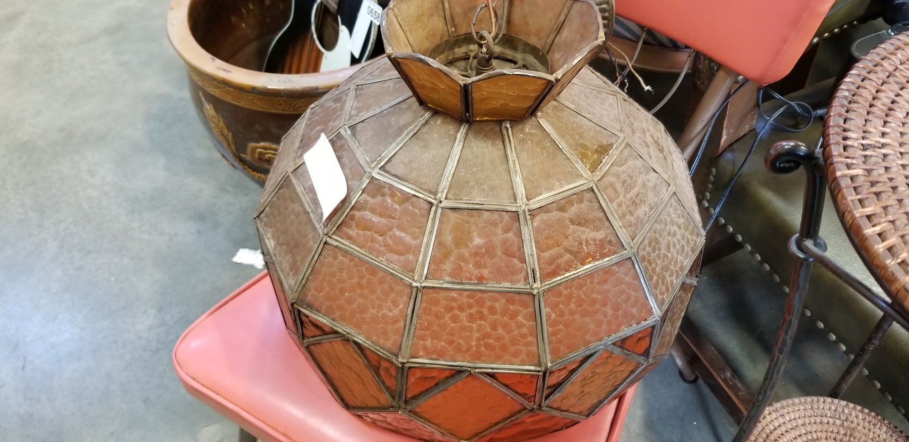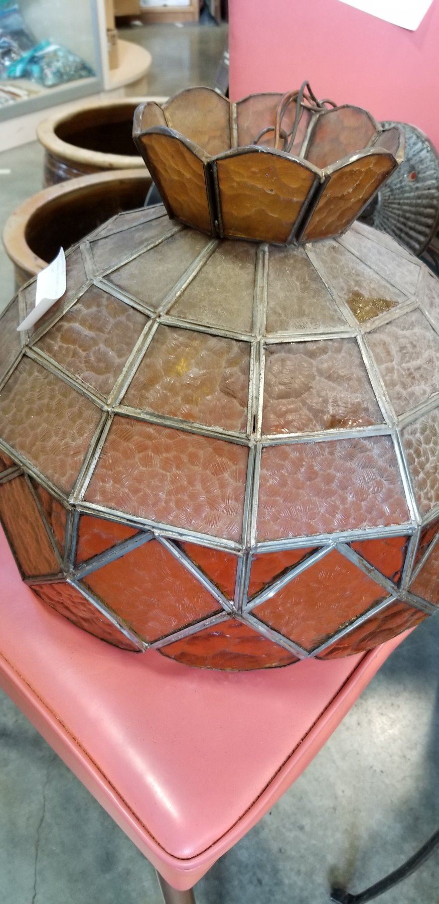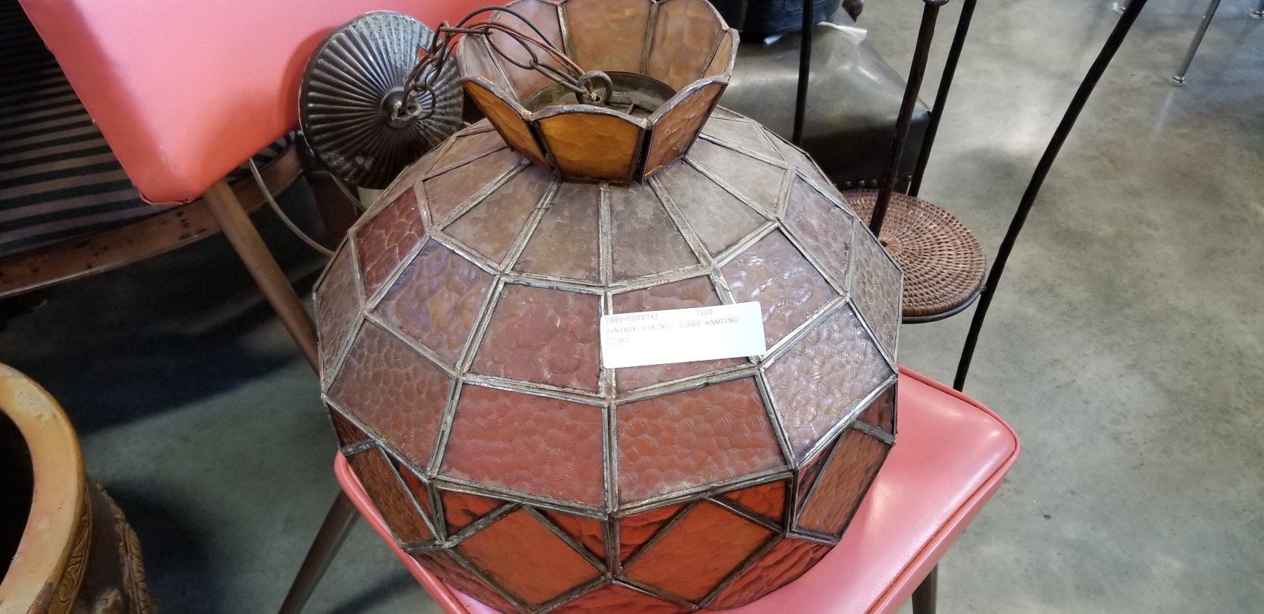 VINTAGE STAINED GLASS HANGING LIGHT