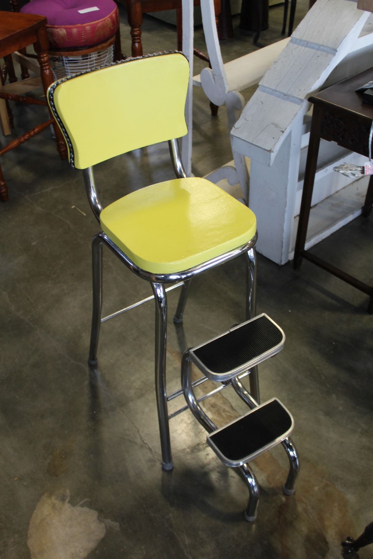 VINTAGE STEP STOOL AND PAINTED STOOL