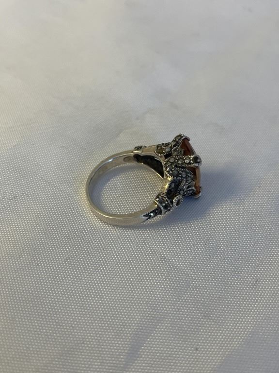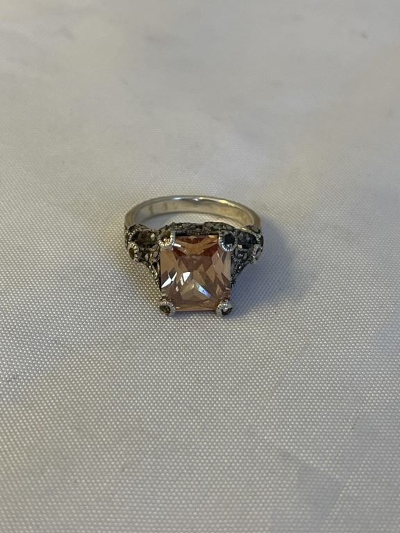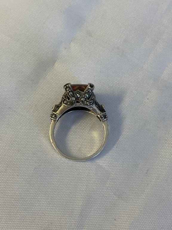 VINTAGE STERLING SILVER RING SIZE 7.5 SOME TINY STONES MISSING