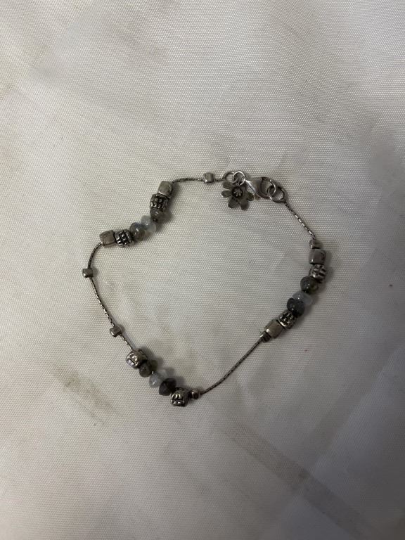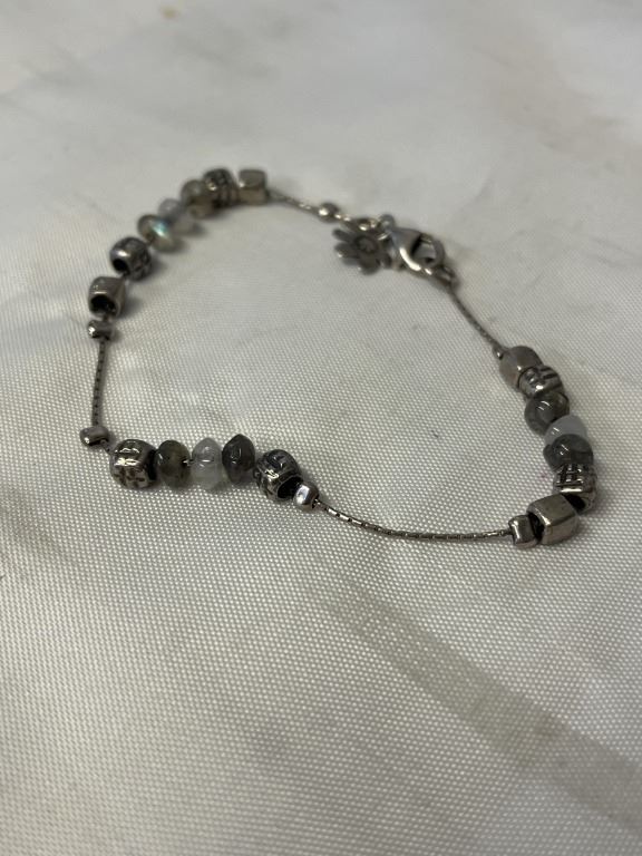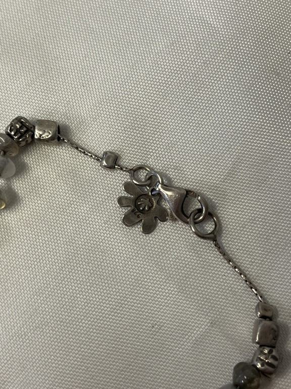 VINTAGE STERLING SILVER W/ BEADS AND NATURAL LABRADORITE STONES BRACELET, MARKED 925