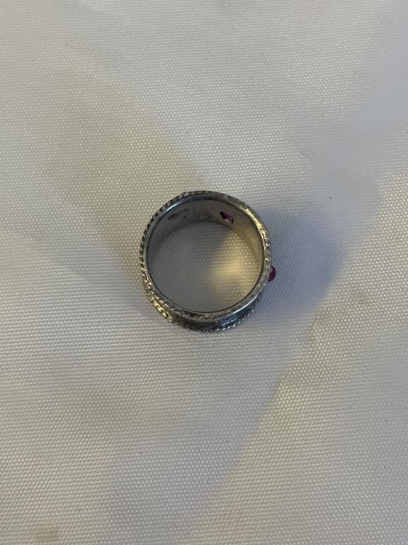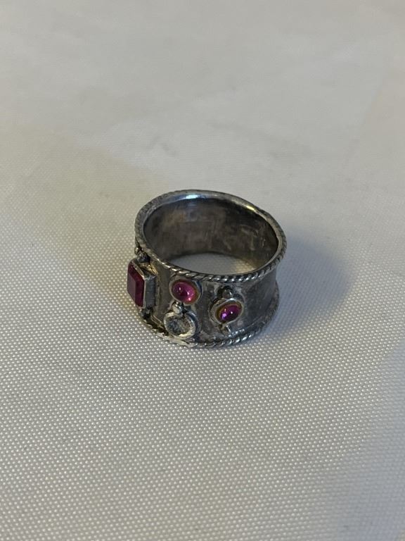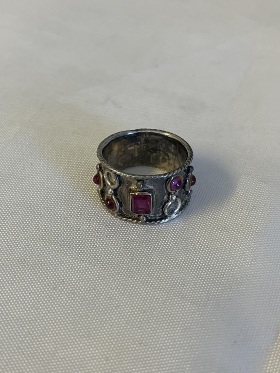 VINTAGE STERLING SILVER W/ RUBIES RING BAND SIZE 6.5 2 STONES MISSING