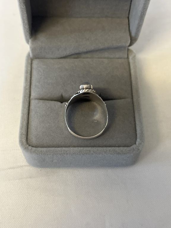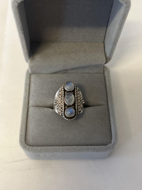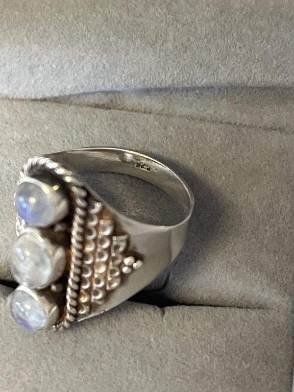 VINTAGE STERLING SILVER WITH 3 MOONSTONES RING MARKED 925 SIZE 7.5