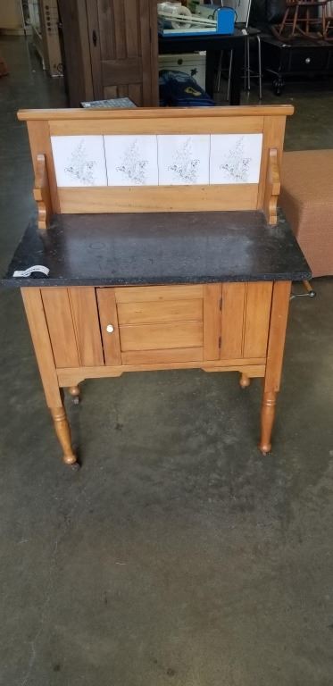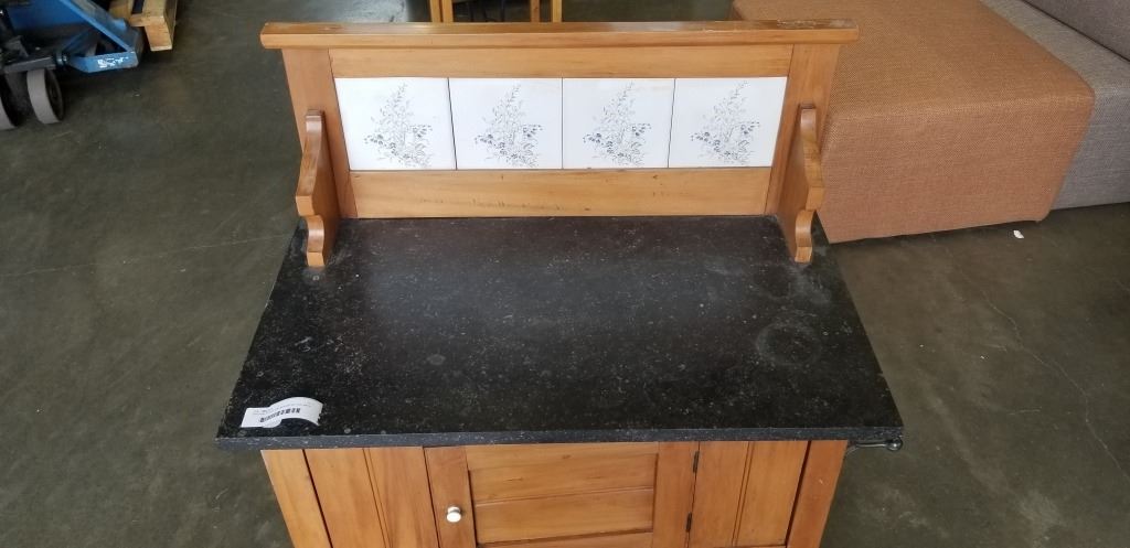 VINTAGE STONE TOP SERVER W/ TILE BACK