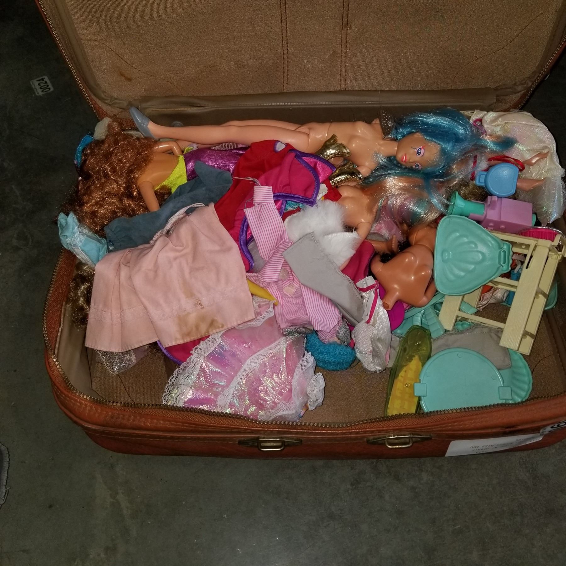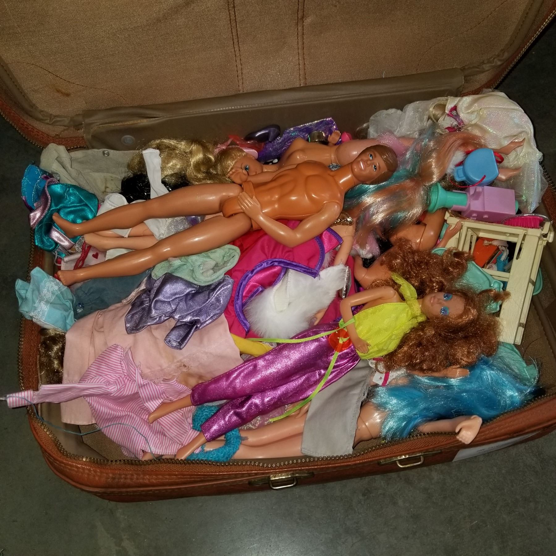 VINTAGE SUITCASE W/ BARBIE CLOTHES AND ACCESSORIES AND SOME BARBIES