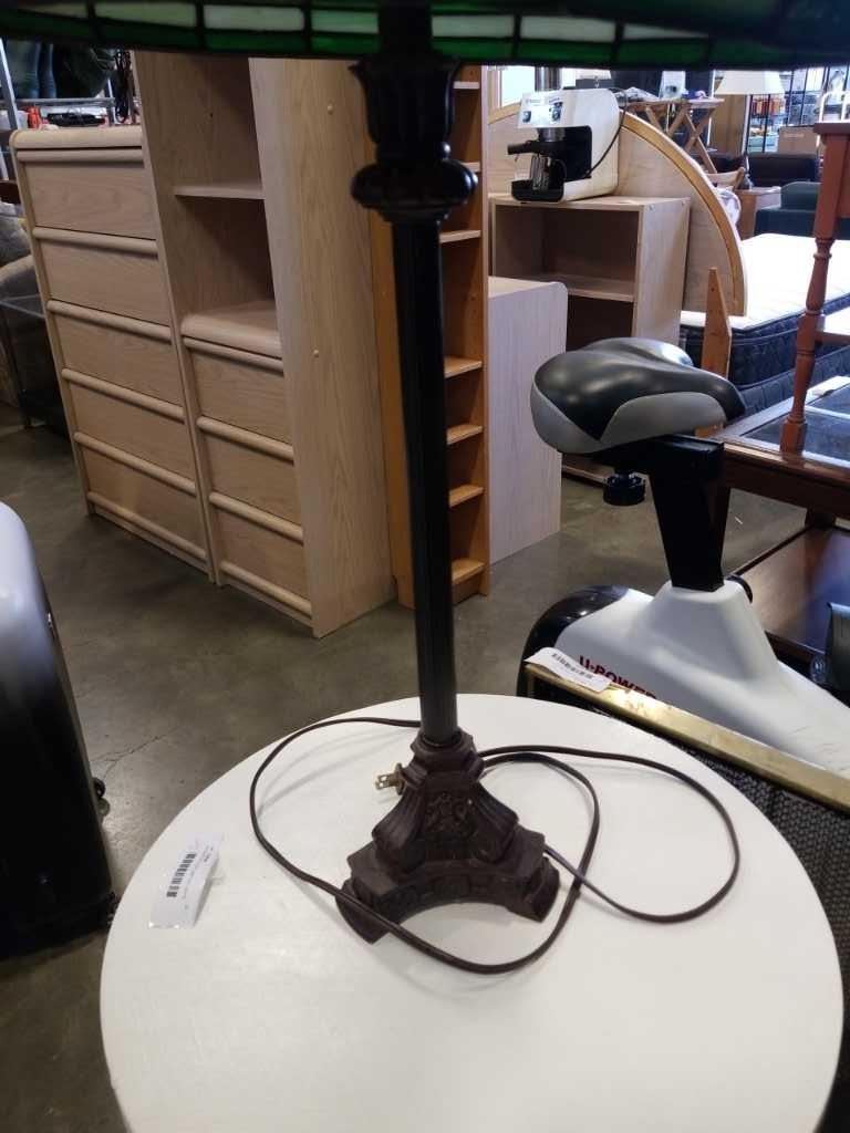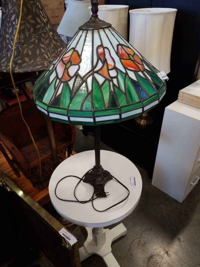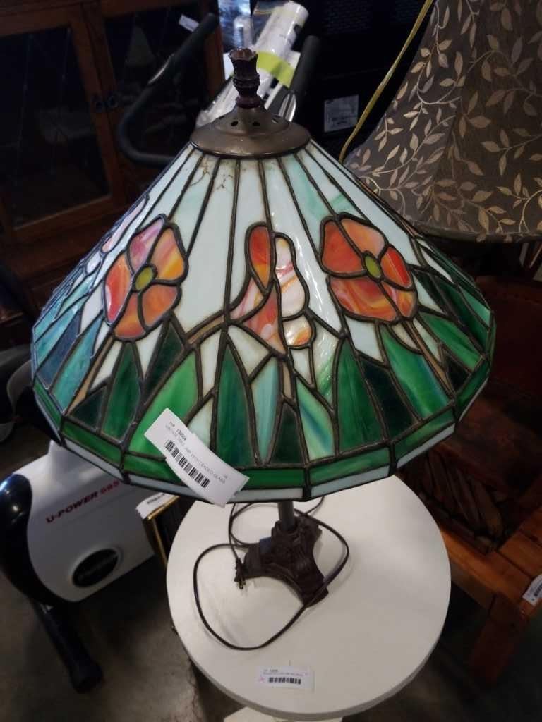 VINTAGE TABLE LAMP WITH LEADED GLASS SHADE