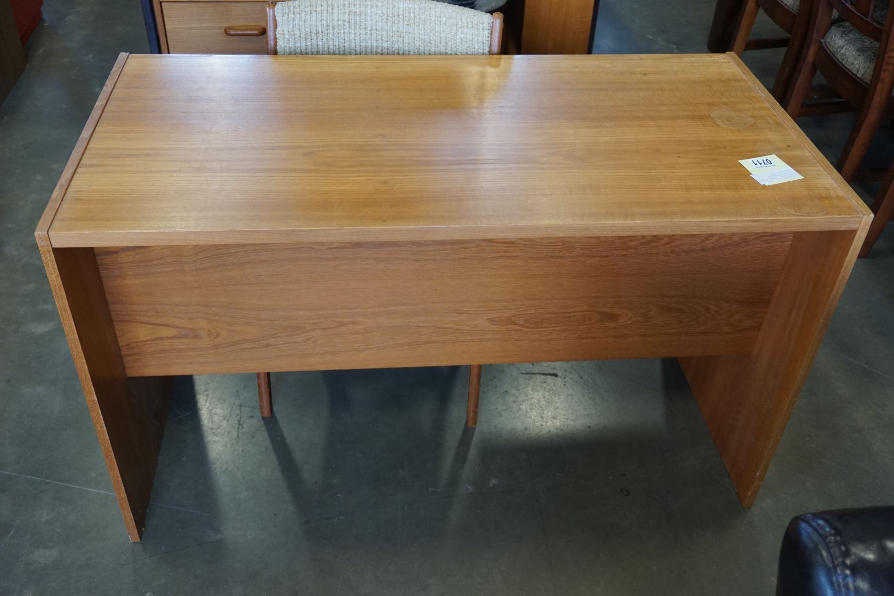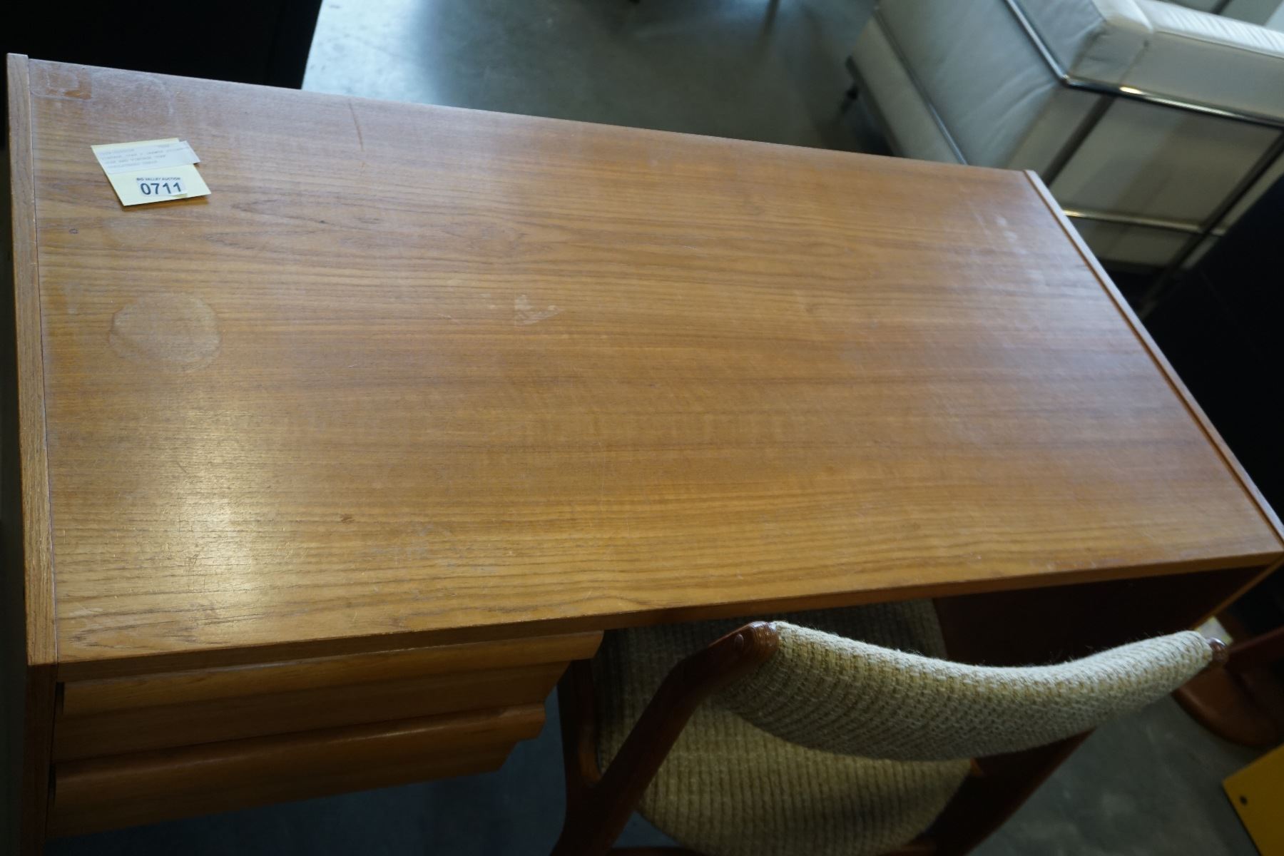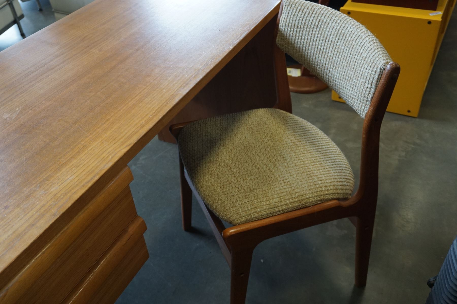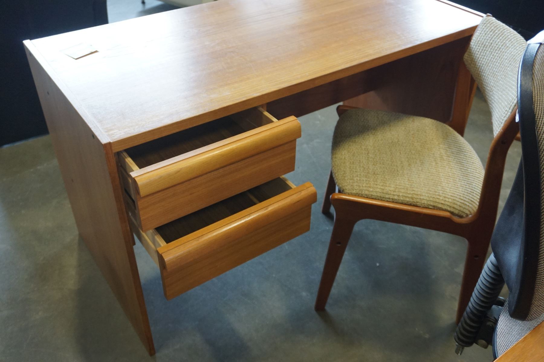 VINTAGE TEAK 2 DRAWER STUDENTS DESK AND VINTAGE TEAK UPHOLSTERED CHAIR