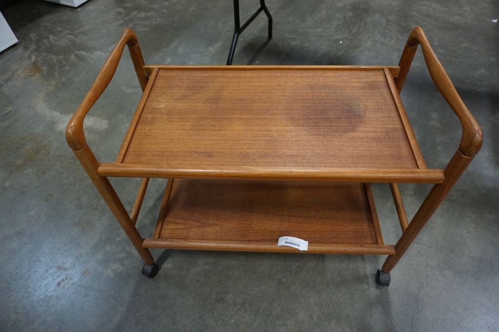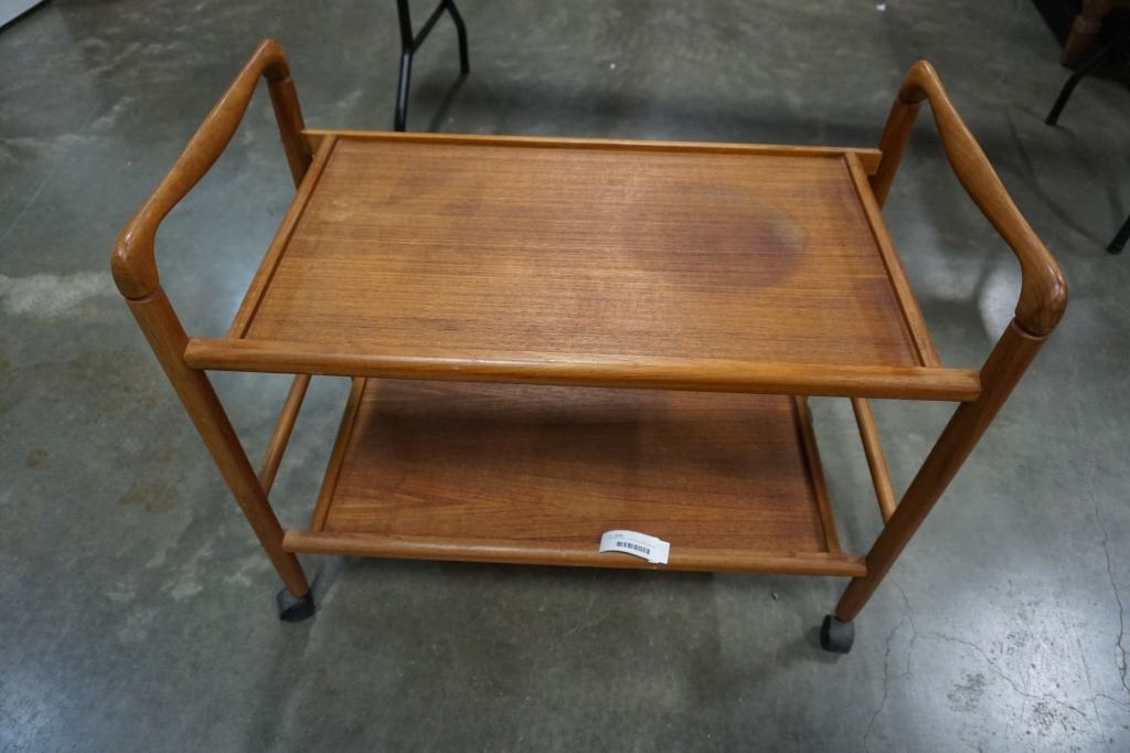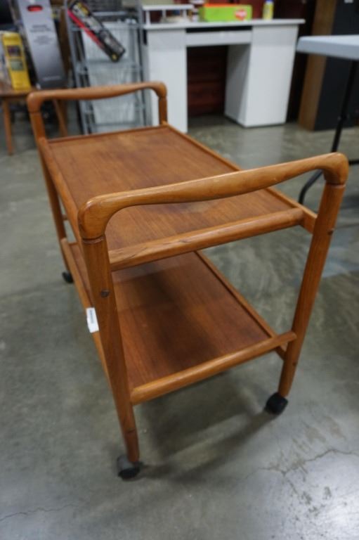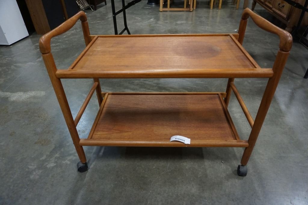 VINTAGE TEAK 2 TIER ROLLING SERVING CART