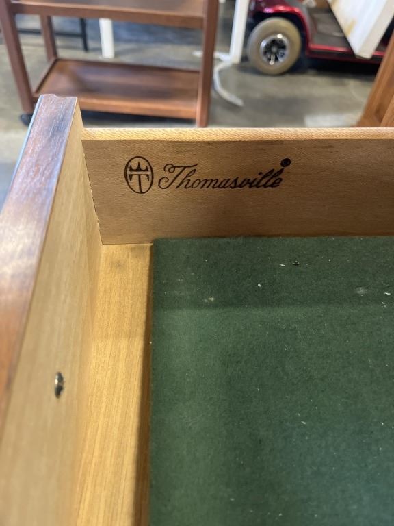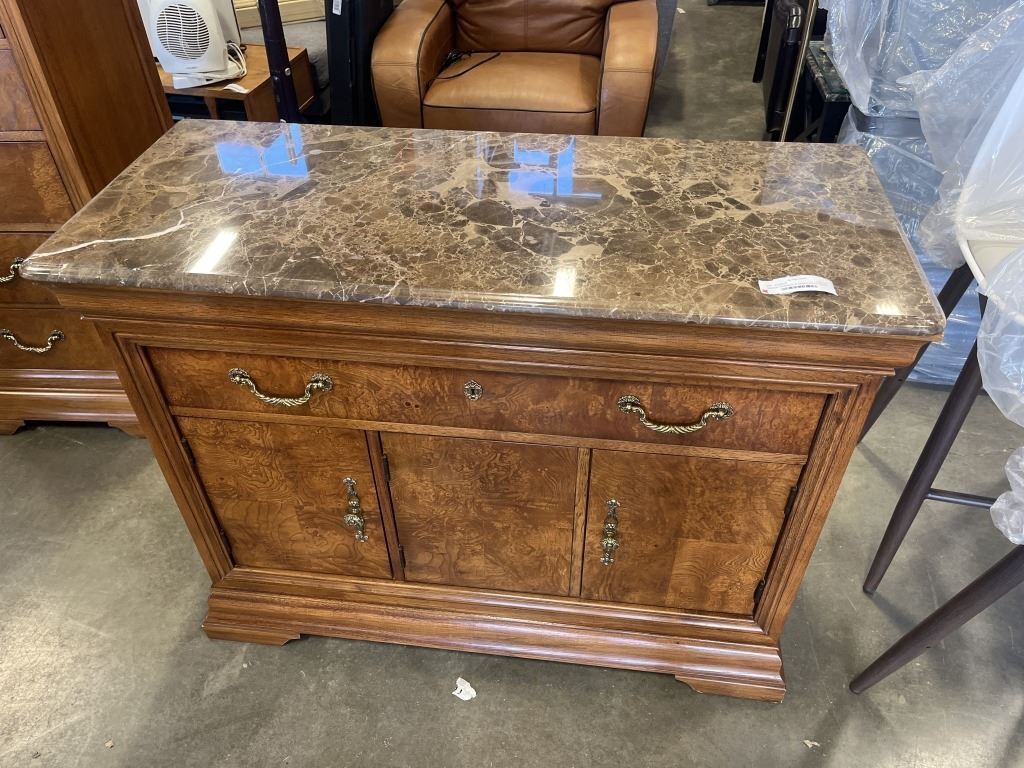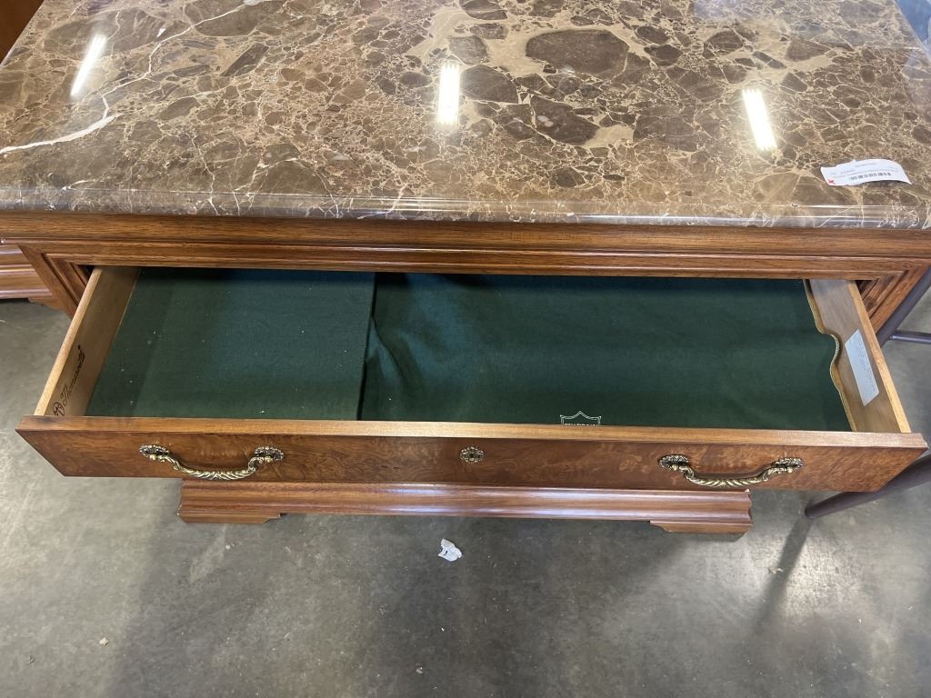 VINTAGE THOMASVILLE FRENCH POLISH PECAN SERVING CABINET WITH MARBLE TOP