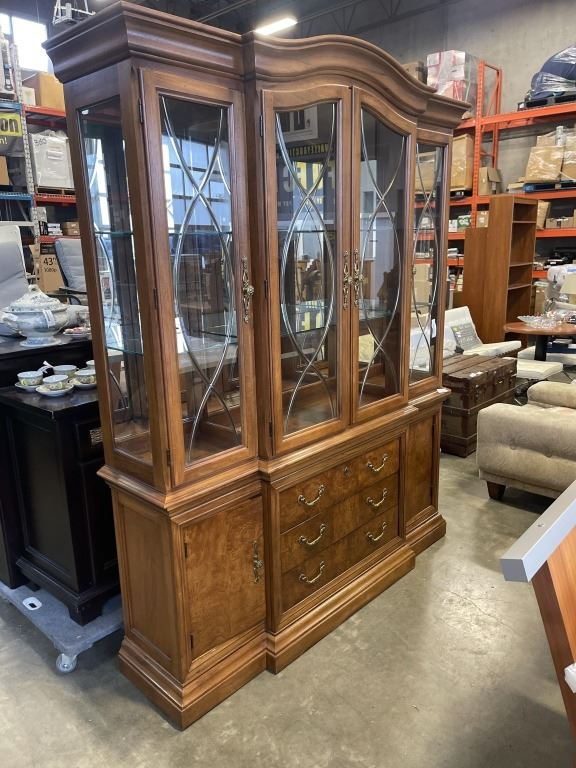 VINTAGE THOMASVILLE FRENCH POLISH PECAN SIDEBOARD WITH HUTCH
