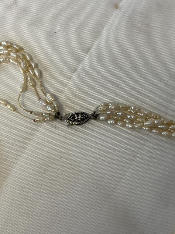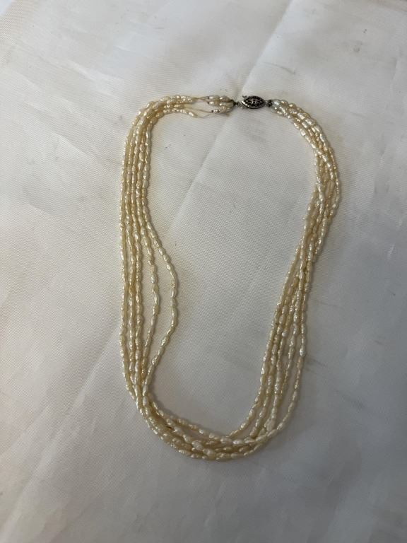 VINTAGE TINY 5 STRAND FRESHWATER PEARL NECKLACE W/ ORIGINAL STERLING SILVER CLASP