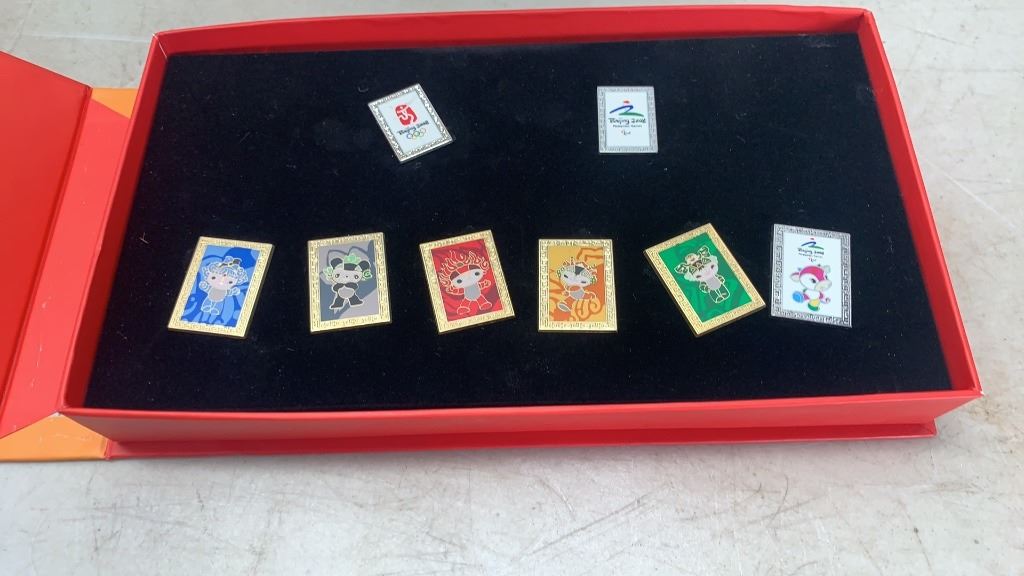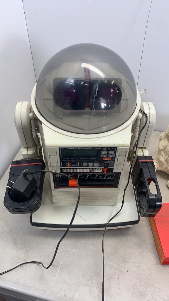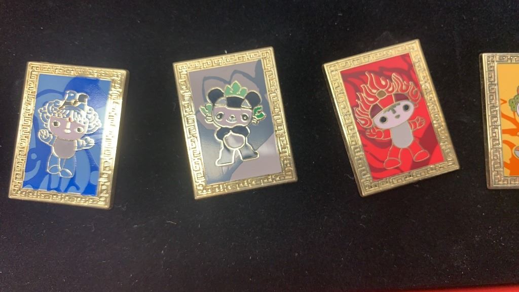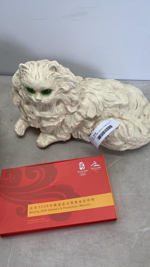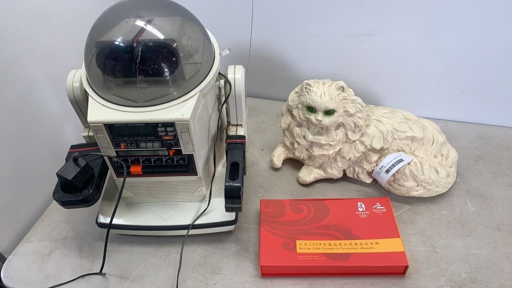 VINTAGE TOMY OMNIBOT ROBOT TOY, BEIJING OLYMPIC 2008 PINS AND CAT FIGURE