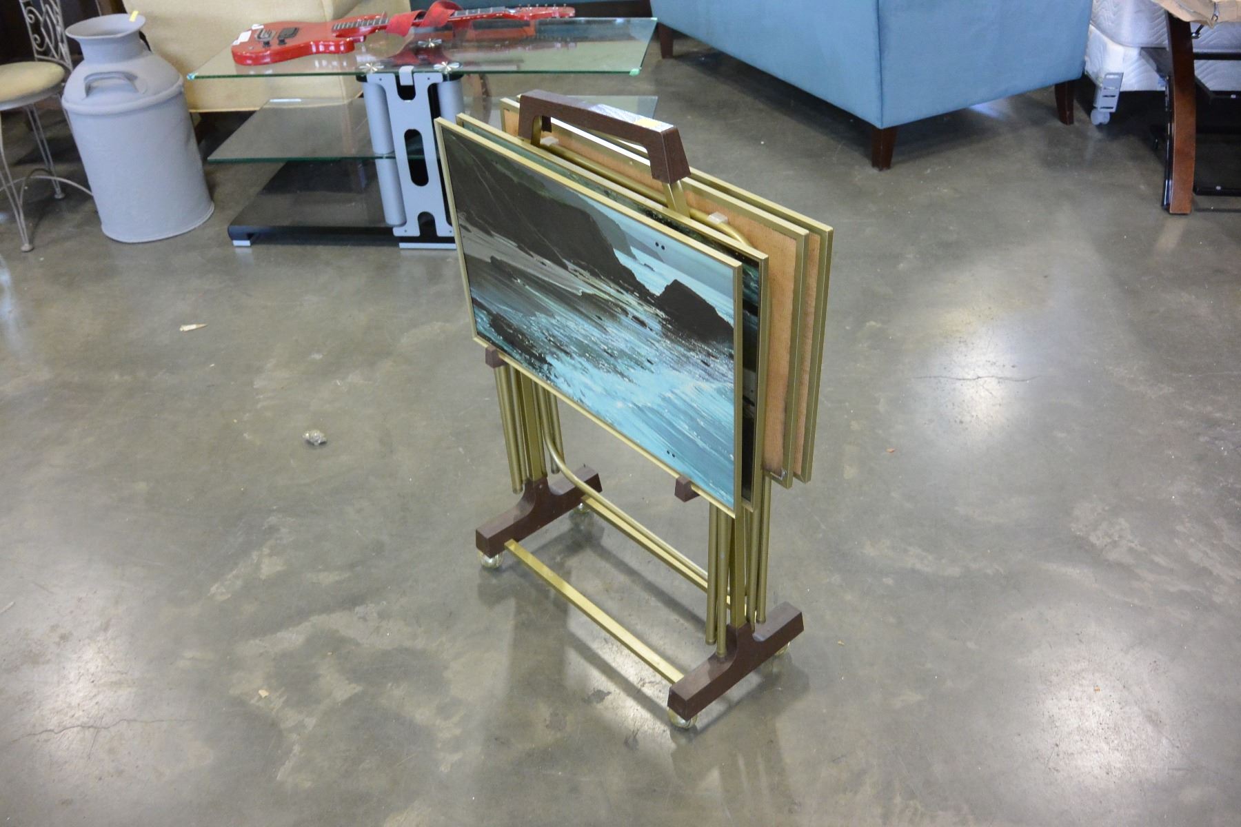 VINTAGE TV TRAY SET ON ROLLING STAND