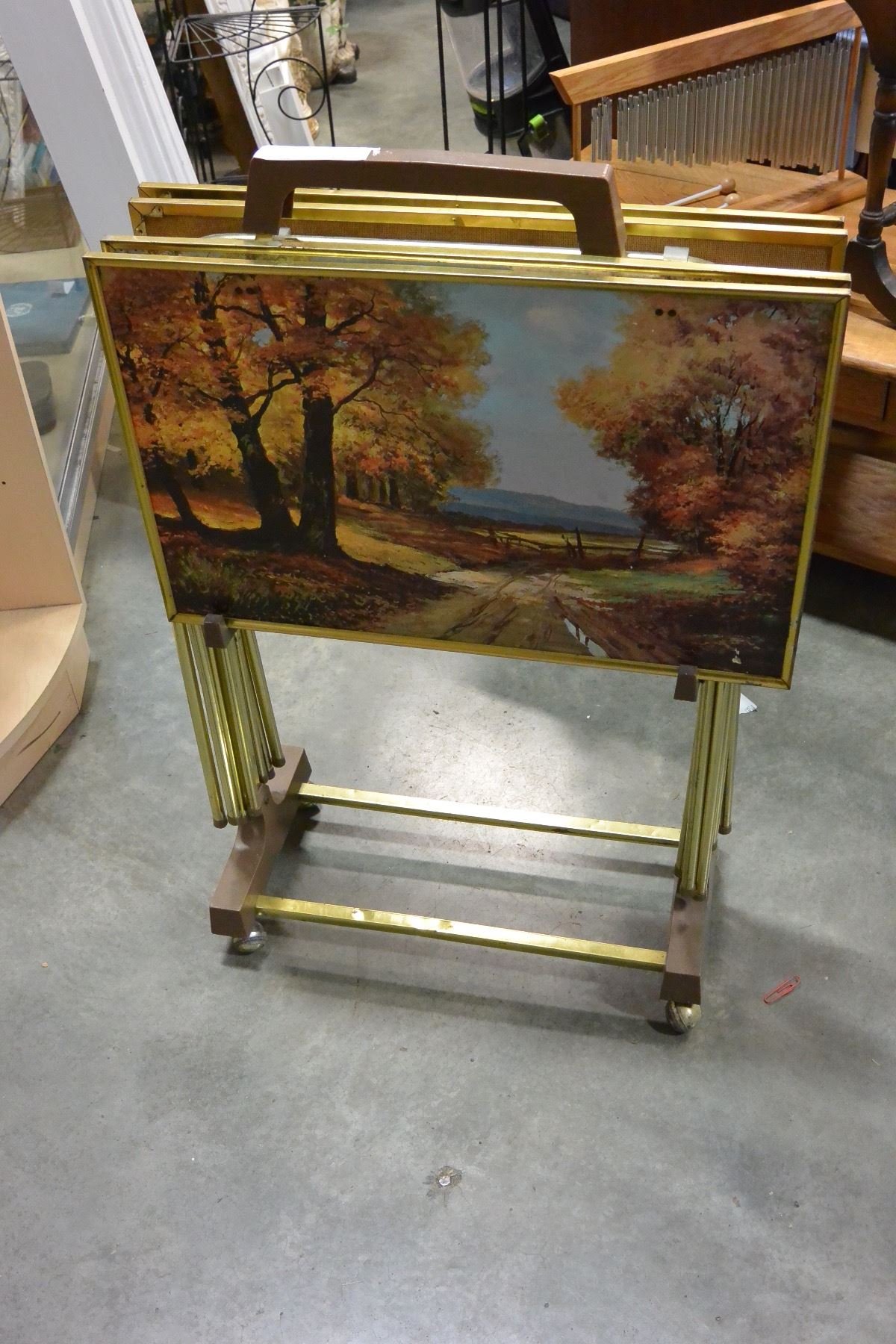 VINTAGE TV TRAYS IN CART SET
