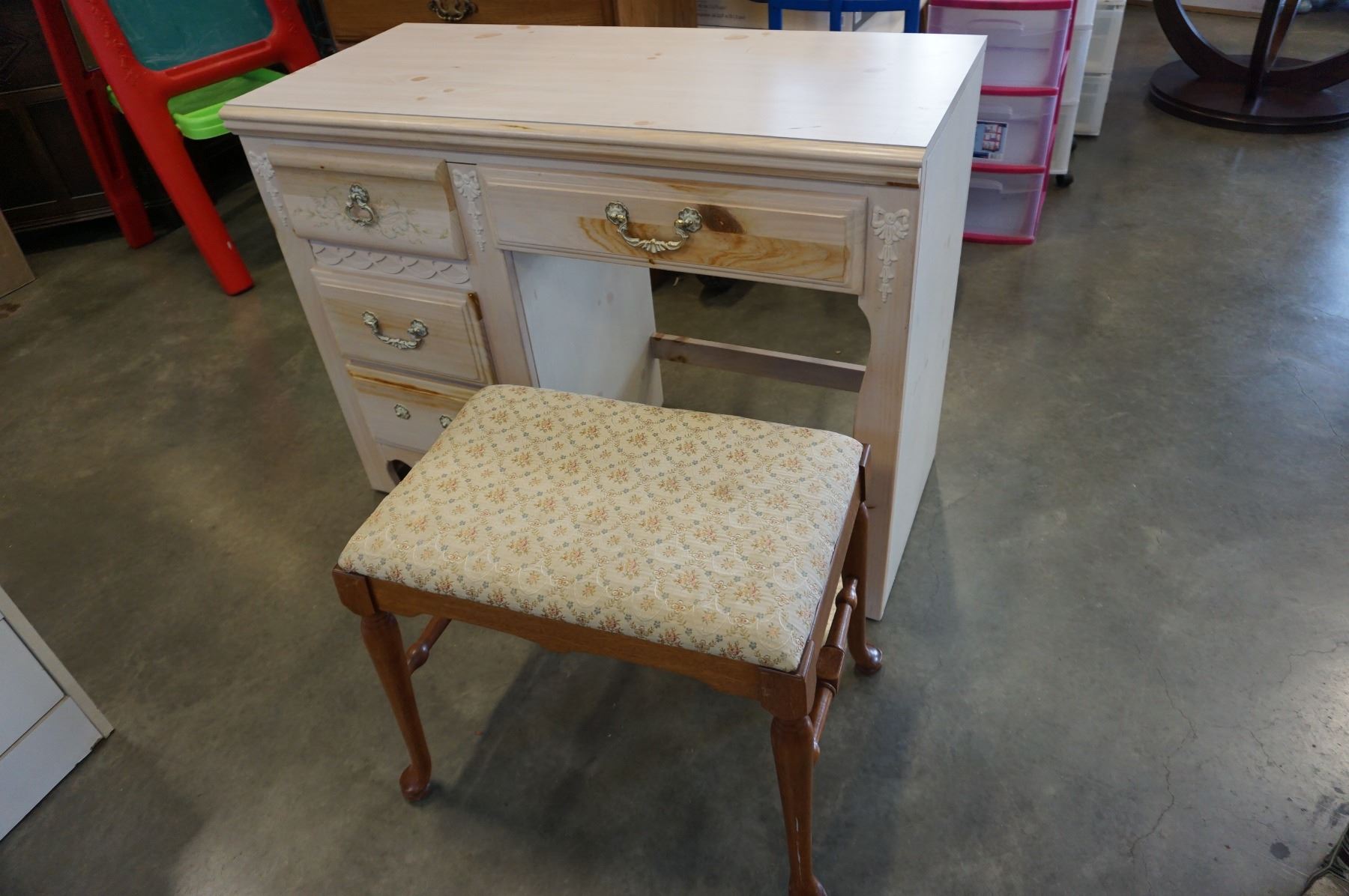 VINTAGE VANITY DESK AND STOOL