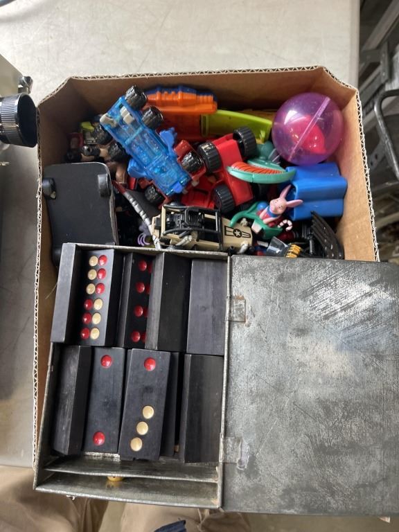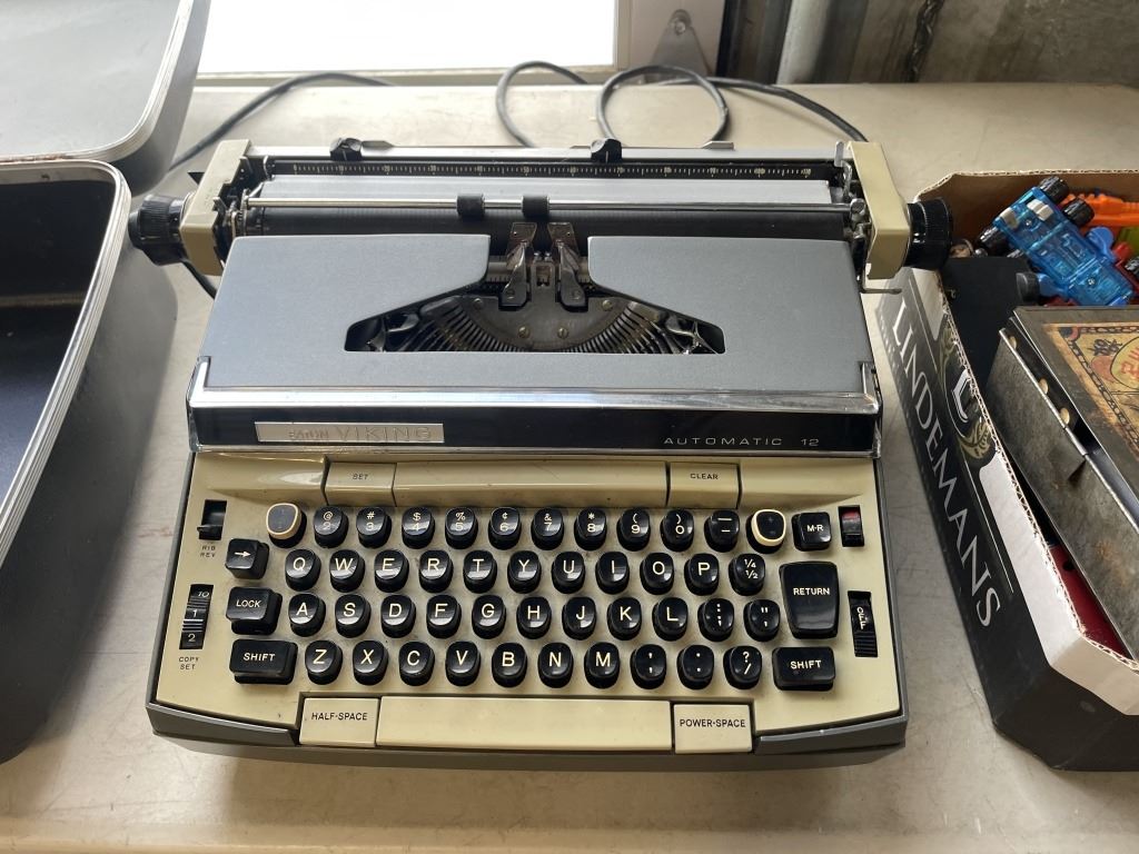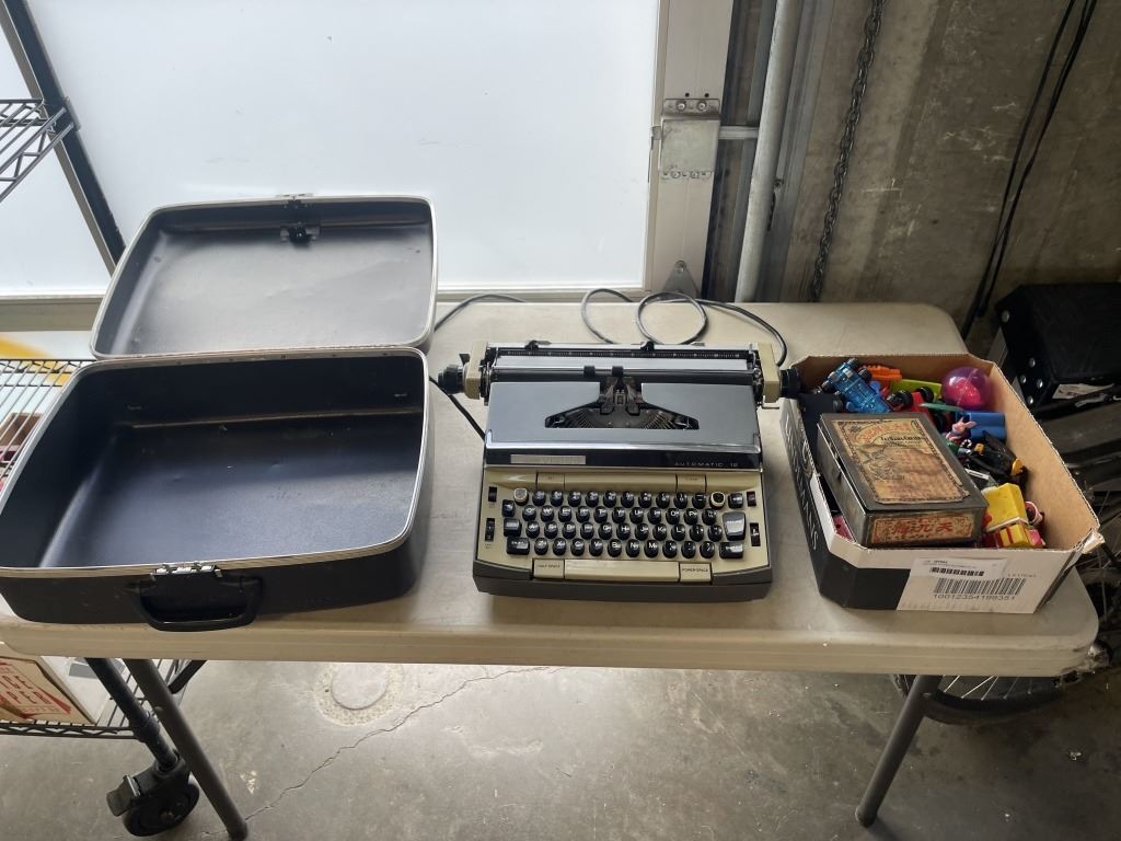 VINTAGE VIKING AUTOMATIC 12 TYPEWRITER AND TRAY OF VINTAGE COLLECTIBLE TOYS