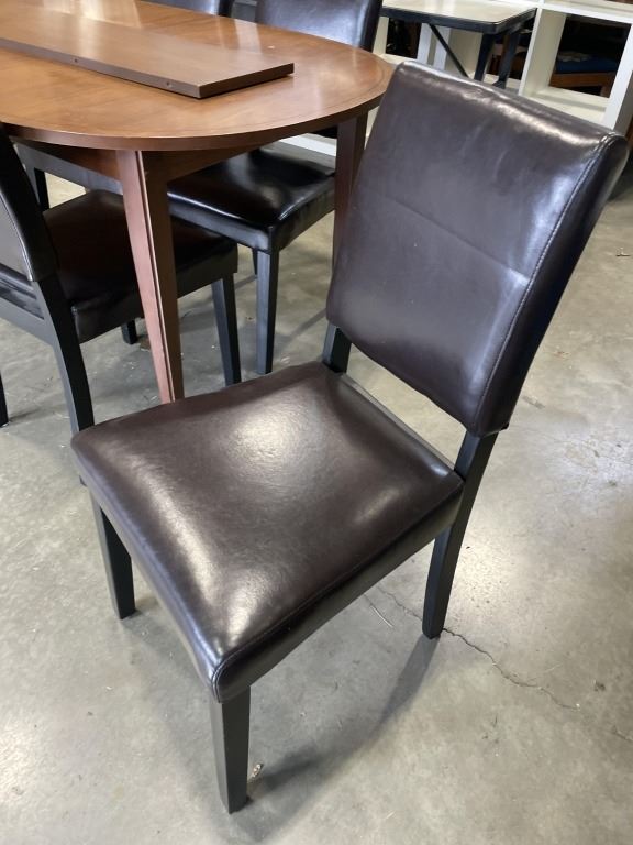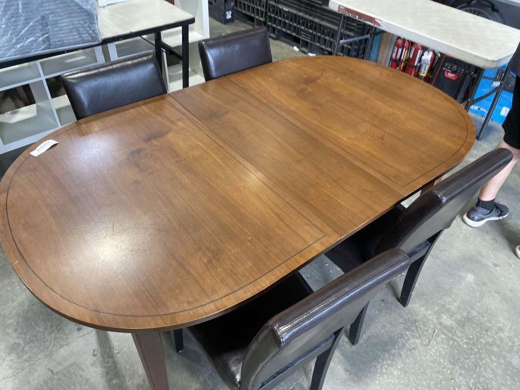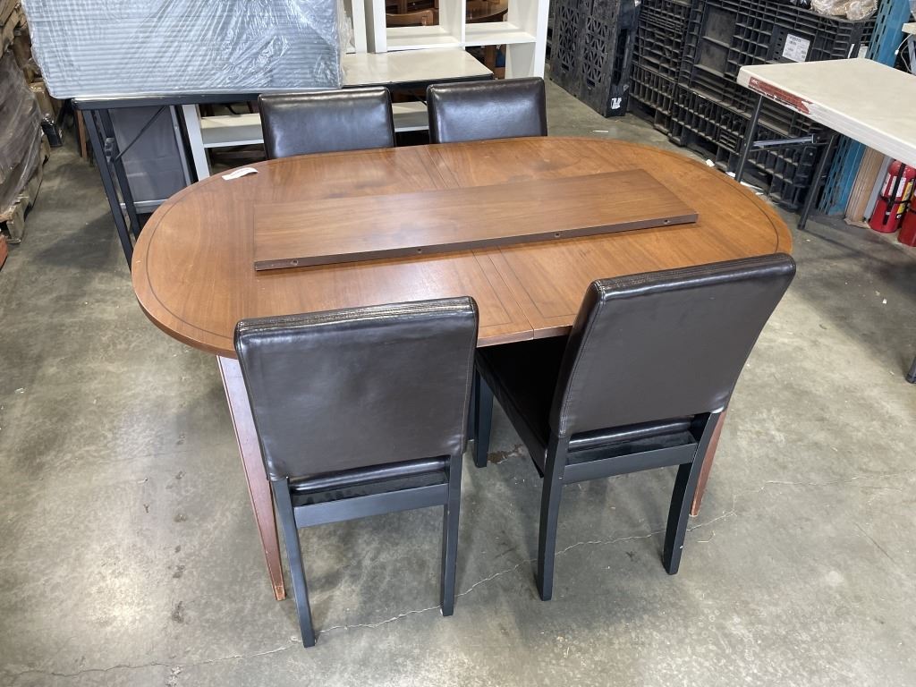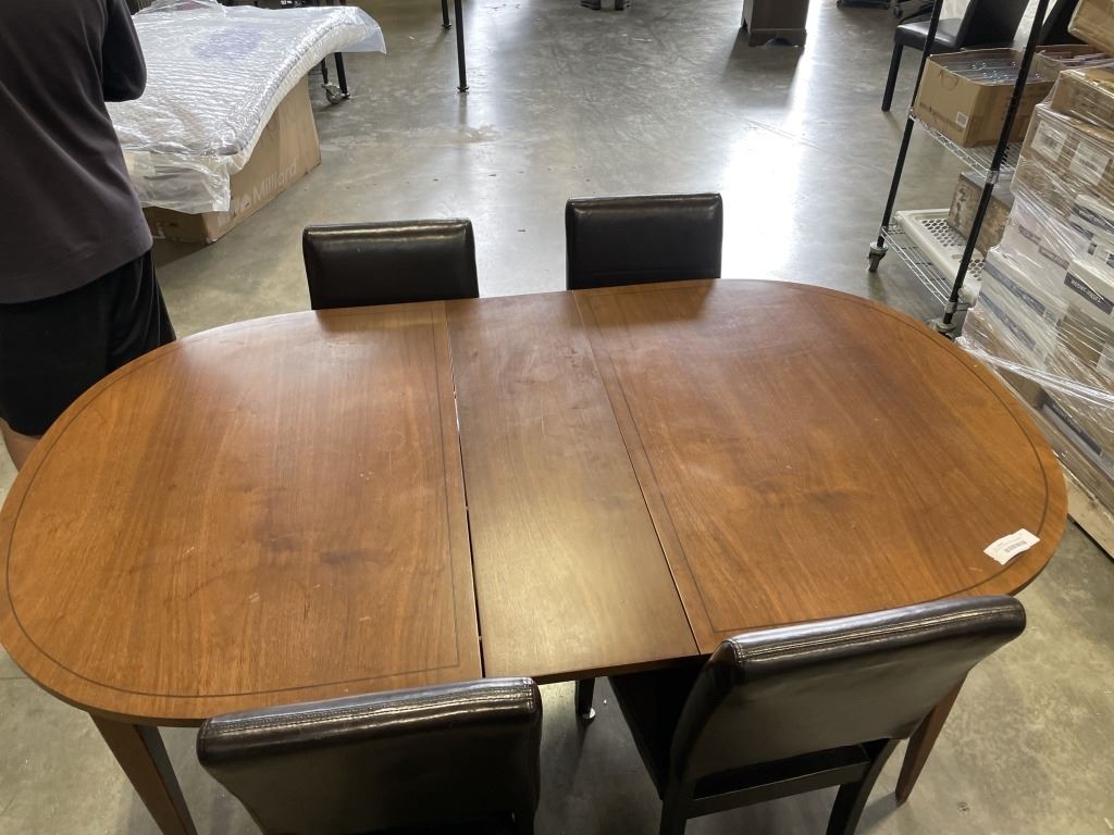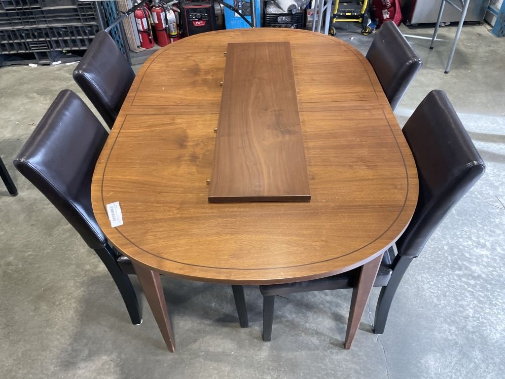 VINTAGE WALNUT DINING TABLE AND 4 LEATHER CHAIRS